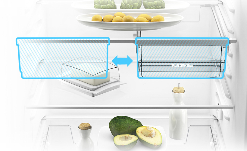 Выдвижной подвесной контейнер Pull Box позволяет рационально разместить свежие продукты небольших размеров во внутреннем пространстве холодильника и перемещать его в удобную для пользования позицию