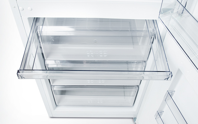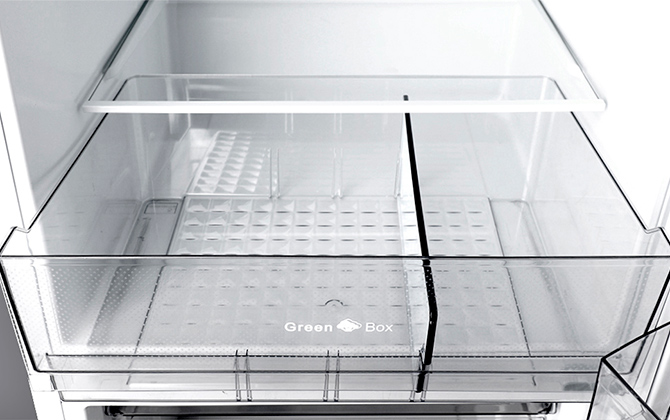 Наличие разделителя в большом ящике Green Box обеспечивает раздельное хранение овощей и фруктов с возможностью регулировать его местоположение