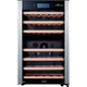 - Двухзонный шкаф премиум класса GPD-45 может использоваться для охлаждения вина перед подачей, длительного хранения или созревания винной коллекции. Модель рассчитана на размещение в ней до 45 бутылок вина стандартного объема 0, 75 л. Современный компрессор обеспечивает низкий уровень вибраций. На полках из твердых пород дерева не образуется конденсат, что позволяет сохранить этикетки бутылок в первоначальном виде. Современное светодиодное освещение не является источником тепла и сохраняет электроэнергию. На двери установлен тонированный стеклопакет, препятствующий проникновению света и сохраняющий свойства благородного алкоголя. Сменный угольный фильтр служит для устранения посторонних запахов, проникающих внутрь холодильника через систему естественной вентиляции. Для предотвращения высыхания пробки в шкафу сохраняется влажность более 50%. Это позволяет бутылкам с вином храниться в течение долгих лет. Благодаря «зимнему» режиму прибор можно устанавливать даже в помещениях с низкой температурой. В таких случаях у винного шкафа включается режим подогрева камеры. Управление параметрами работы модели производится при помощи сенсорных кнопок и ЖК-дисплея с цифровой индикацией температуры.