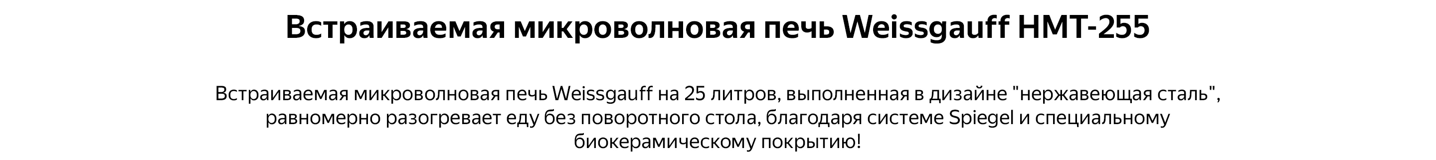 Встраиваемая микроволновая печь Weissgauff HMT-255