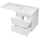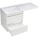 Тумба оснащена двумя выдвижными ящиками, установленными на направляющие Boyard скрытого монтажа. В верхнем ящике предусмотрен вырез, что позволяет использовать стандартный сифон. На тумбу устанавливается раковина Эстет Даллас в правом или левом исполнении из искусственного мрамора с удобной столешницей.
