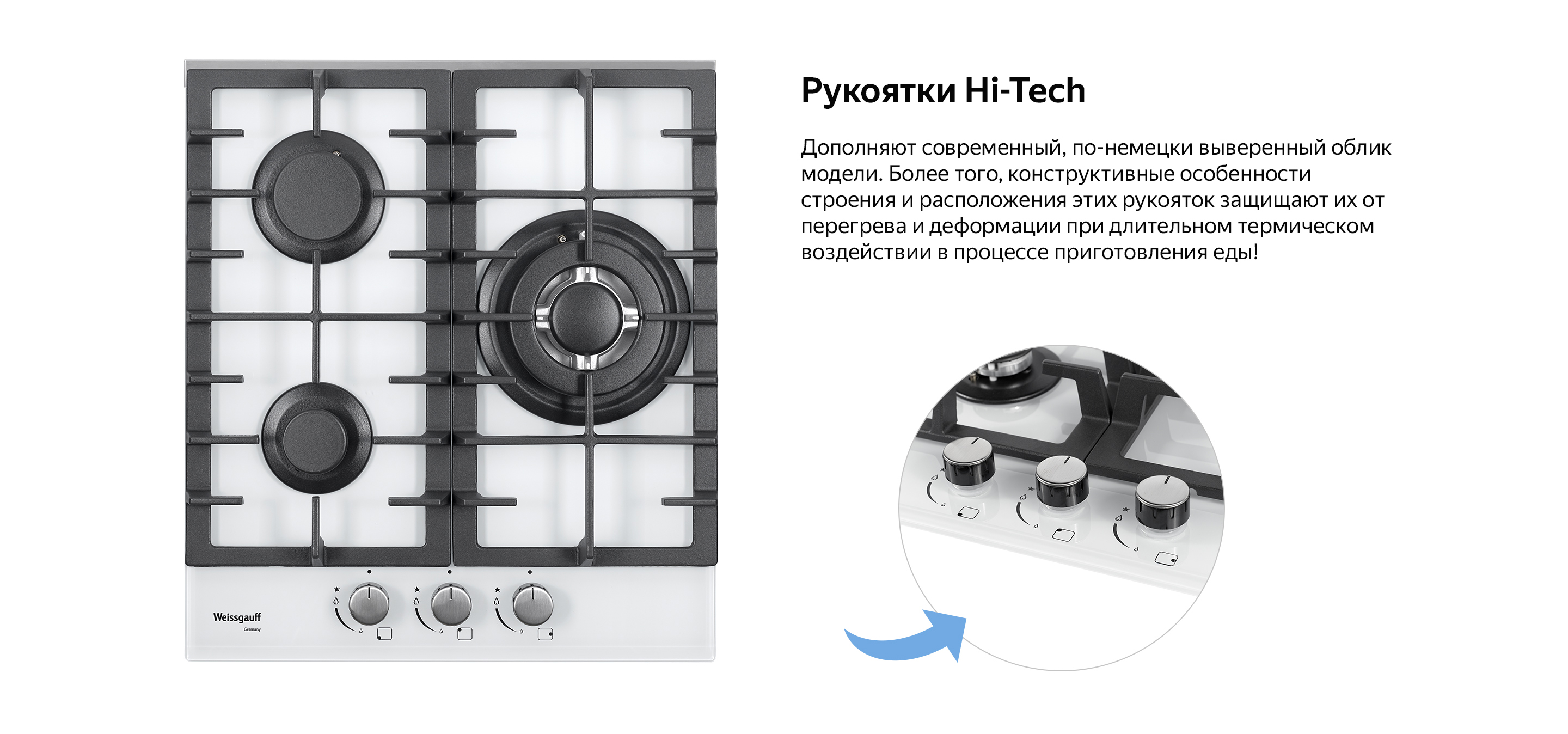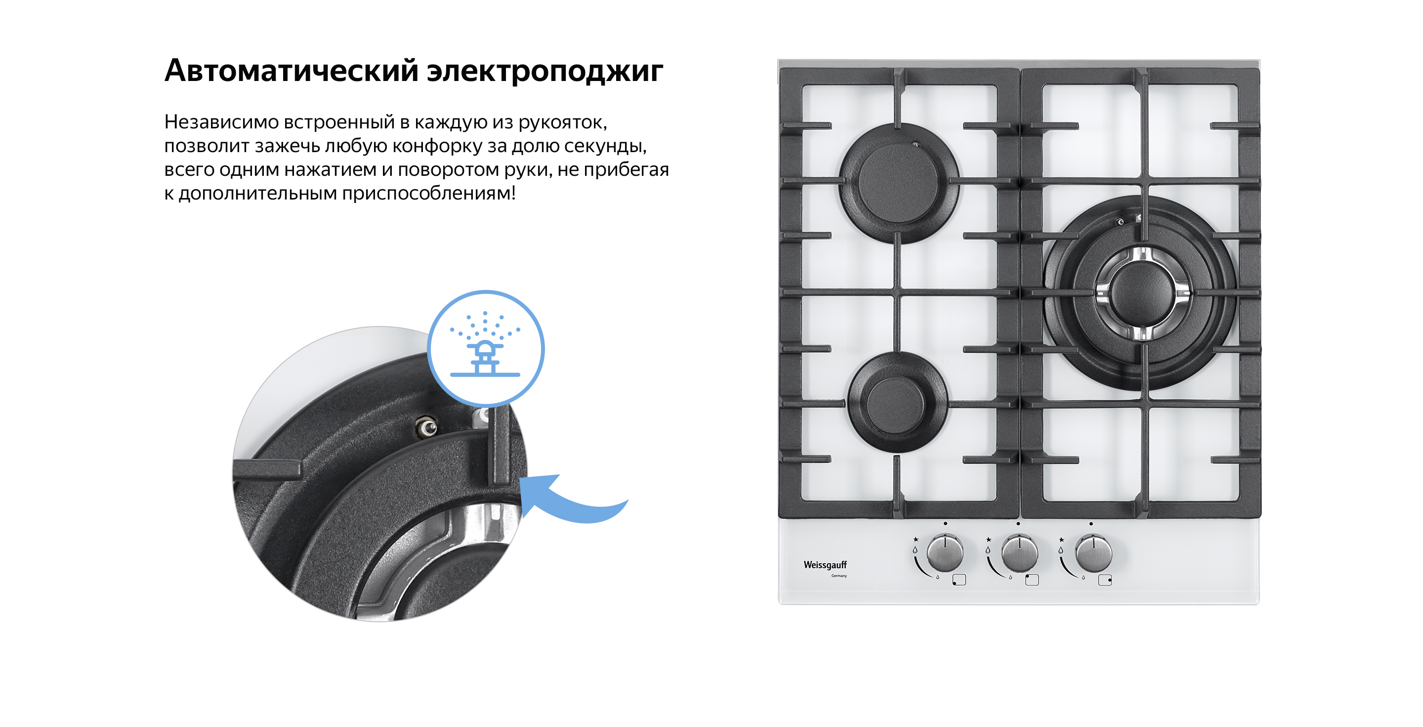 Встраиваемая независимая газовая панель Weissgauff шириной 45 см, исполненная в закалённом белом стекле - это стильное и компактное решение для вашей кухни!