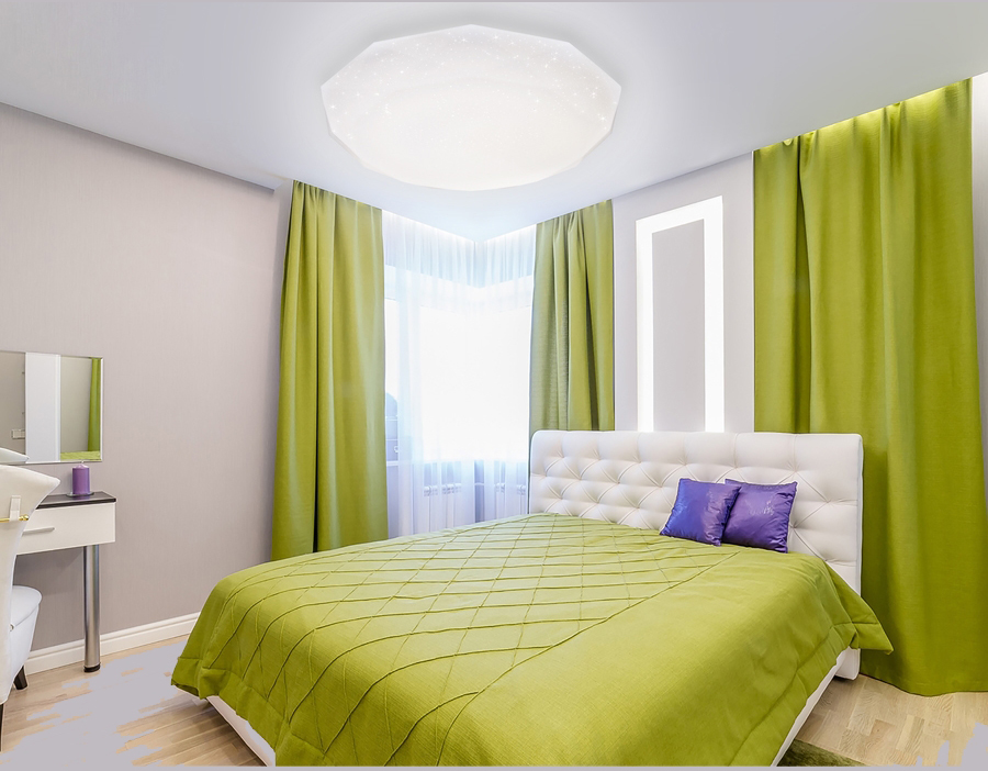 Управлять устройством легко – благодаря пульту дистанционного управления. Можно это делать, не вставая со своего места. Удобно, особенно, если вы уже комфортно устроились под теплым пледом в кресле или на диване и готовы к просмотру любимого фильма или сериала, а вот яркость света отрегулировать забыли. Кстати, для просмотра телевизора идеально подойдет еще один отдельный режим – ночник. Он дает минимальный поток света. При его активации в ночное время суток в комнате легко разглядеть контуры мебели, но в то же время нет яркого света, который обычно мешает расслабиться и комфортно смотреть ТВ-контент. Этот режим можно спокойно оставить на всю ночь, ведь светодиодные светильники довольно выгодные и экономичные устройства – вас не напугают квитанции за электроэнергию в конце месяца. Поэтому светильник можно устанавливать в детской спальне и не бояться, что малыш проснется ночью в полной темноте. Кстати, материал плафона можно считать противоударным – это еще один плюс в пользу размещения светильника в комнате маленького ребенка.