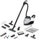 HEPA фильтр; 3 вставки для чистки различных твердых и ковровых покрытий и 2 удлинительные трубки с подводкой пара по 0,5 м; Ручная насадка (для паровой обработки): Комбинируется с насадками для мойки окон (большой и малой), щеточным венцом или обтяжкой из махровой ткани; Точечное сопло (для паровой обработки): Комбинируется с удлинителем и круглыми щетками (4 разных цветов); Насадки для мягкой мебели (большая и малая); Щелевая насадка, щеточная насадка для мебели; Пеногаситель «FoamStop»; Заправочная емкость, ерш для очистки, сумка для принадлежностей; Насадки для окон (большая и малая); Обтяжки из махровой ткани; Комплект круглых щеток; Насадка с щеточным венцом; Всасывающий шланг с подводкой пара и рукояткой
