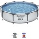 Размер: 305 x 76 см. Объем при 90% заполнении бассейна: 4678 литров Подкладка для бассейна из прочного материала DuraPlus ™. Цвет серый Облицовка интерьера мозаикой из гальки Возможна простая сборка без инструментов Чрезвычайно жесткая конструкция рамы с защитой от коррозии для повышения прочности и долговечности FrameLink System ™ с пластиковыми Т-образными соединителями предотвращает ржавчину между стержнями и защищает от деформации. Лента ПВХ обеспечивает дополнительную устойчивость боковых стенок. Встроенный сливной клапан с адаптером для садового шланга Производительность фильтр-насоса: 1249 л/ч