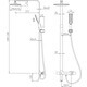 В состав настенной душевой системы входят: термостат с изливом, верхний душ, ручной душ со шлангом, держатель ручного душа, крепление к стене, набор для подключения воды.