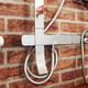 Лейка ручного душа шириной 5,3 см подсоединяется к термостату с помощью шланга длиной 150 см. Для удобства использования душевой лейки предусмотрен держатель на стену.