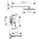 В состав встроенной настенной душевой системы входят: однорычажный смеситель с механизмом, излив и верхний душ на кронштейне.