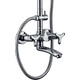 Двухвентильный смеситель с изливом длиной 13,8 см находится в основании душевой системы. Смеситель и излив изготовлены из хромированной латуни. На смесителе расположен дивертер, который служит для переключения потока воды с излива на душ. Верхний поворотный дивертер располагается над смесителем на штанге и осуществляет переключение между верхним и ручным душем.