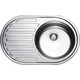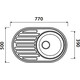 Односекционная овальная мойка из нержавеющей стали, с крылом и возможностью установки в одном положении. Ширина изделия составляет 77 см, длина 50 см, крыло располагается слева от чаши, имеющей диаметр 39 см и глубину 17 см.