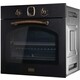 Газовый духовой шкаф в ретро стиле с газовым грилем, конвекцией, газ-контролем. Оснащён звуковым сигналом окончания приготовления. Объем духовки 67 л, телескопические направляющие на одном уровне, трехслойное остекление, каталитическая очистка.