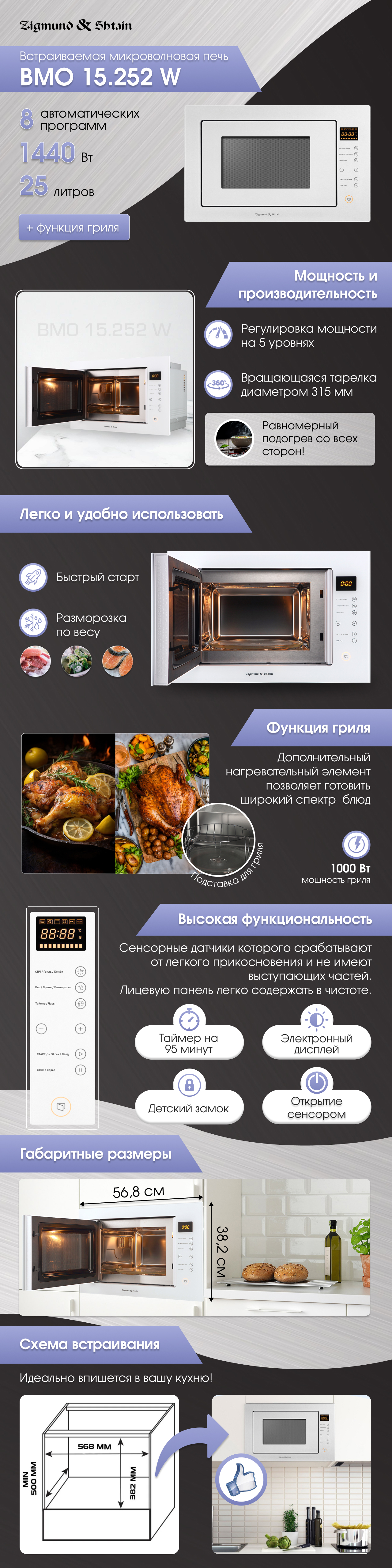 Встраиваемая микроволновая печь Zigmund & Shtain BMO 15.252 W