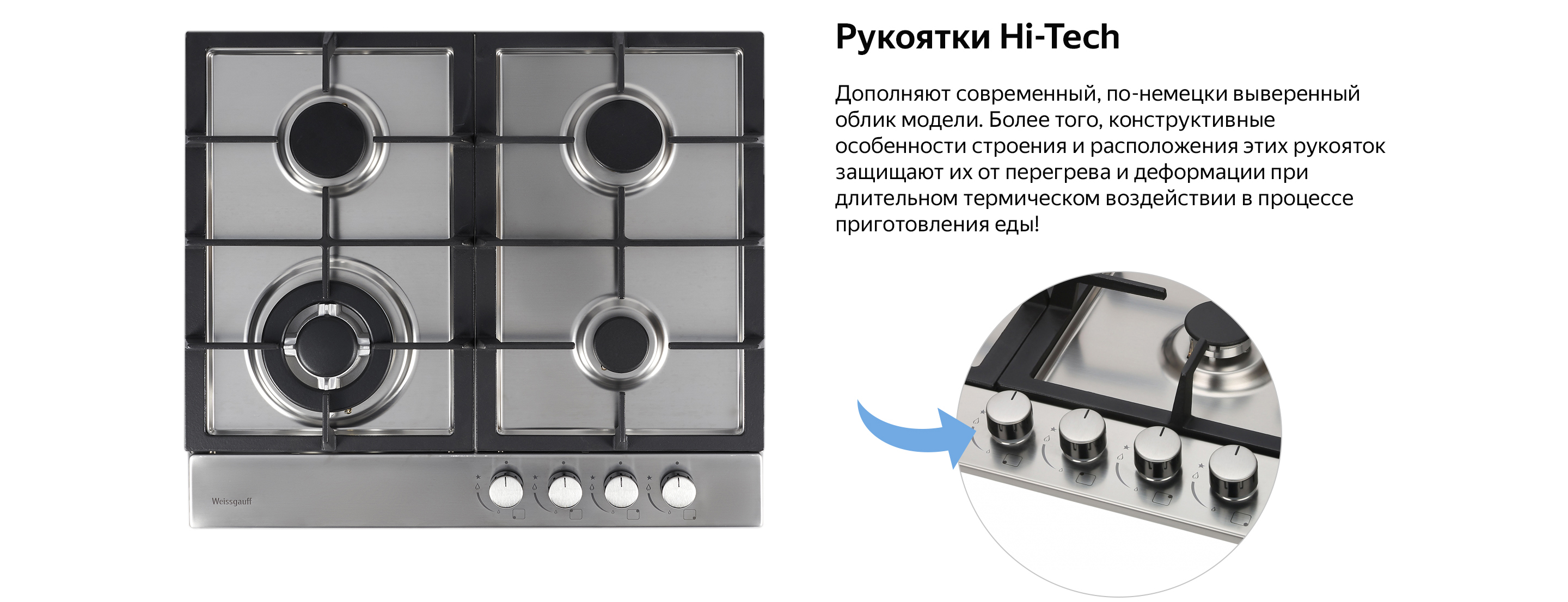 Наиболее передовая панель Weissgauff в дизайне "газ на металле", оборудована дополнительными элементами защиты поверхности, обеспечивающими максимально устойчивое положение решеток, а скошенная передняя панель обеспечивает наибольшее удобство работы с данной моделью
