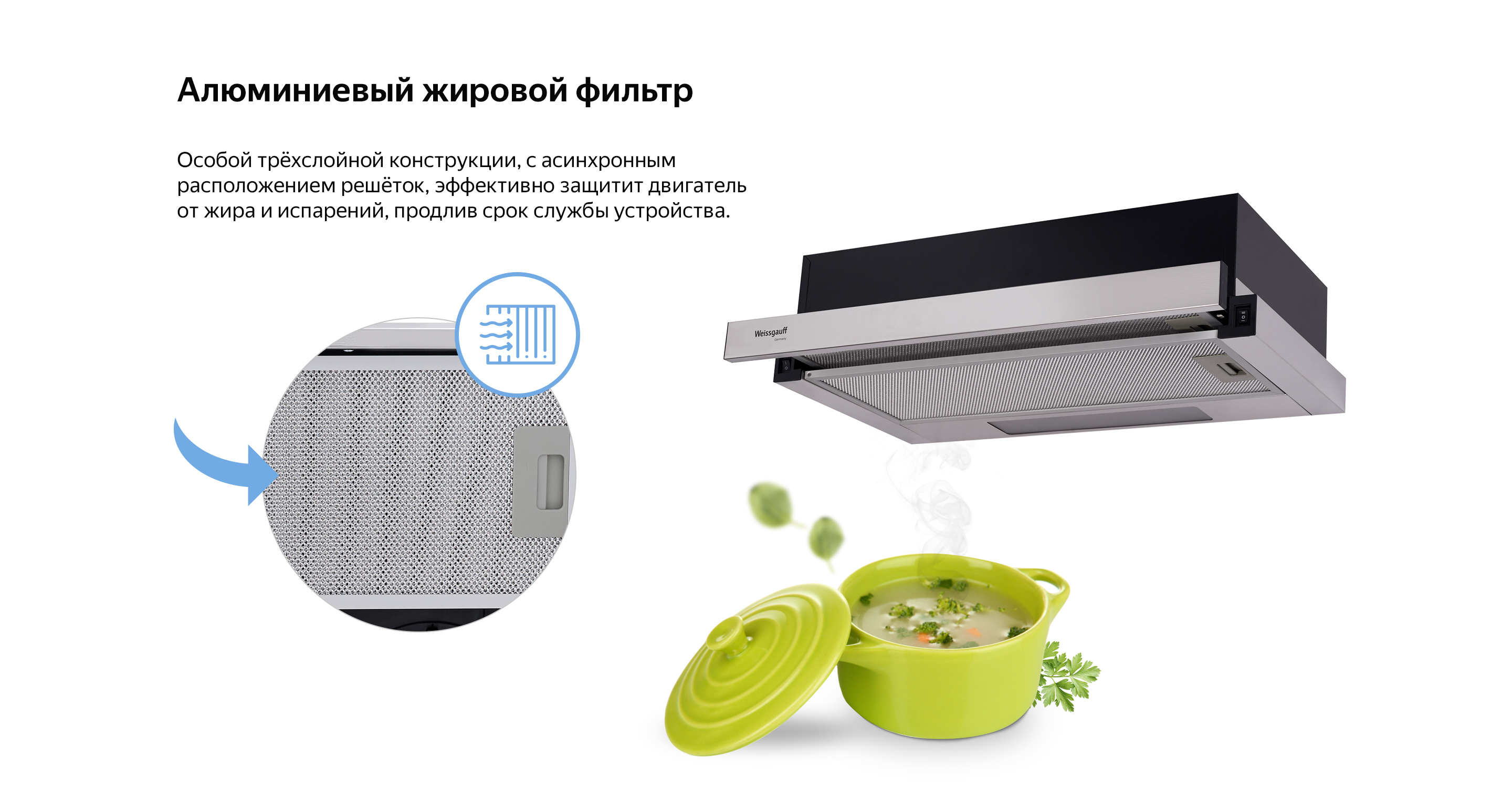 Встраиваемая в верхний подвесной шкаф двухмоторная телескопическая вытяжка от Weissgauff, обладающая впечатляющей производительностью 600 м3/ч и низким уровнем шума 49 дБ, выполненная в цвете "нержавеющая сталь", не только порадует своей функциональностью, но и станет настоящим украшением вашей кухни! К данной модели подходит угольный фильтр Weissgauff TEL 05-06