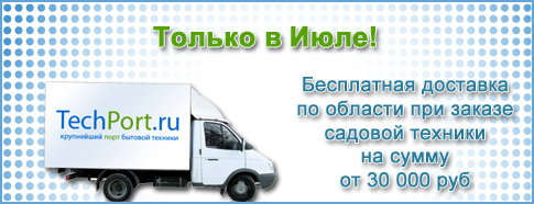 При заказе садовой техники в пятницу, субботу и воскресенье на сумму от 30 000 руб - доставка по всей Московской области бесплатная!