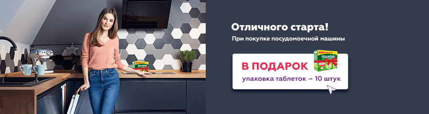 При покупке любой посудомоечной машины в подарок упаковка таблеток из 10 штук Clean and Fresh All in 1.