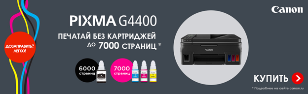 новым струйным МФУ Canon Pixma G4400 «4 в 1» с перезаправляемыми чернильницами! Удобство использования и