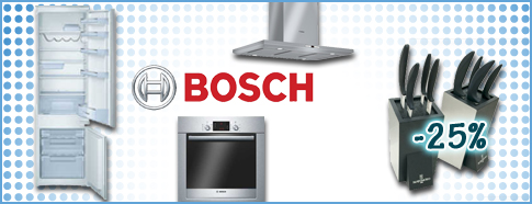При покупке встраиваемой техники Bosch 25% скидка на ножи Hatamoto !