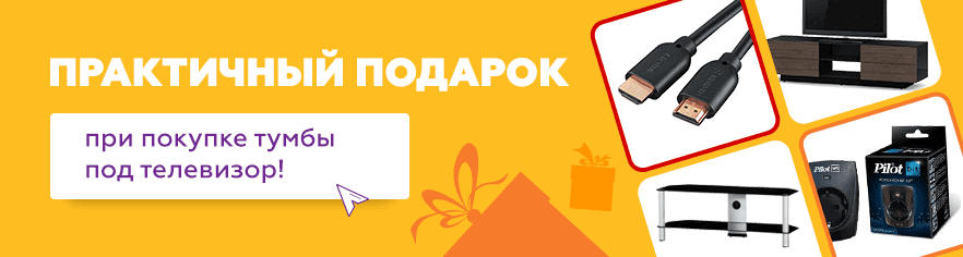 Практичный подарок при покупке тумбы под телевизор. Решайте сами, кабель или сетевой фильтр, просто добавив понравившуюся тумбу в корзину. Подробности акции при клике на баннер.