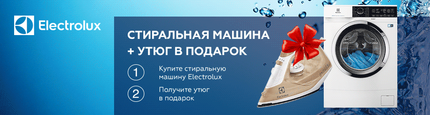 Хотите утюг в подарок? У нас действует акция на стиральные машины Electrolux. Для получения подарка просто положите стиральную машину в корзину и нажмите «Оформить заказ» – подарок добавится автоматически. Кликаем на баннер!