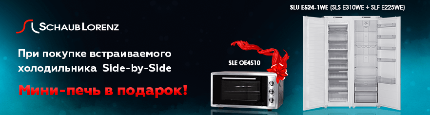 Акция от бренда Schaub Lorenz! При покупке встраиваемого холодильника Schaub Lorenz SLU E524-1WE в подарок мини-печь Schaub Lorenz SLE OE4510. Подробности акции на странице акции, переходим по баннеру.