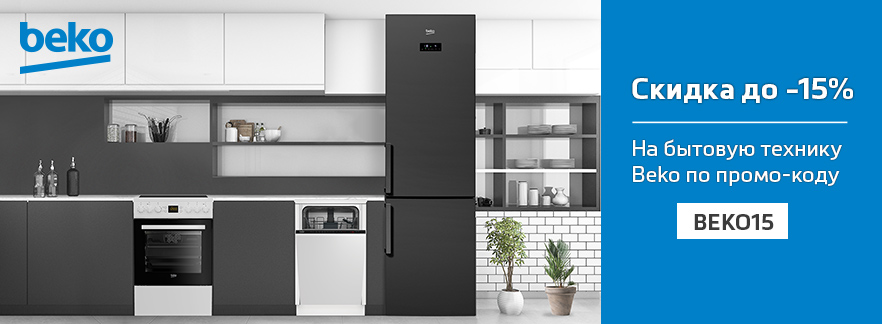 Бытовая техника, заслужившая доверие многих, со скидкой по промо-коду. Товары-участники акции отмечены наклейкой промо-кода – BEKO15. Смело добавляйте прибор в корзину и активируйте скидку в специальном поле.