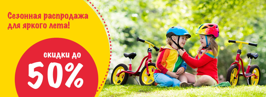 Тут скидки до 50%! Чтобы встретить лето во всеоружии, приглашаем на нашу распродажу: товары для активного детского отдыха, игрушки и другие товары.