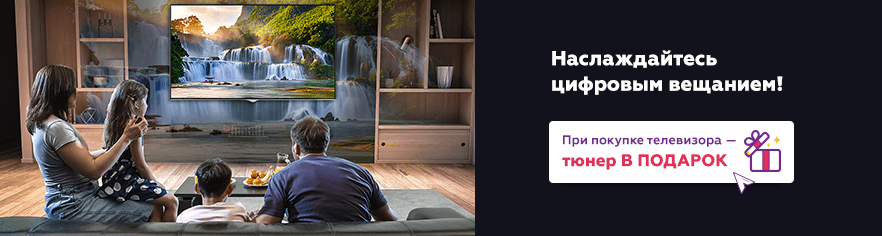 При покупке телевизора из списка участников акции в подарок на выбор тюнер. Скорее жмите на баннер, чтобы узнать подробности.