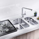 Более элегантная при использовании. По существующим стандартам невозможно сделать так, чтобы материал был абсолютно устойчив к царапинам без специальной обработки. Незначительные признаки использования твердых предметов, таких как керамические ножи, стекло и кухонная посуда, являются частью естественного внешнего вида нержавеющей стали. Во время использования мойки из нержавеющей стали образуются небольшие царапины на ее поверхности, однако, сама мойка остается прочной и устойчивой.