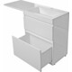 Тумба оснащена двумя выдвижными ящиками, установленными на направляющие Boyard скрытого монтажа. В верхнем ящике предусмотрен вырез, что позволяет использовать стандартный сифон. На тумбу устанавливается раковина Эстет Даллас в правом или левом исполнении из искусственного мрамора с удобной столешницей.
