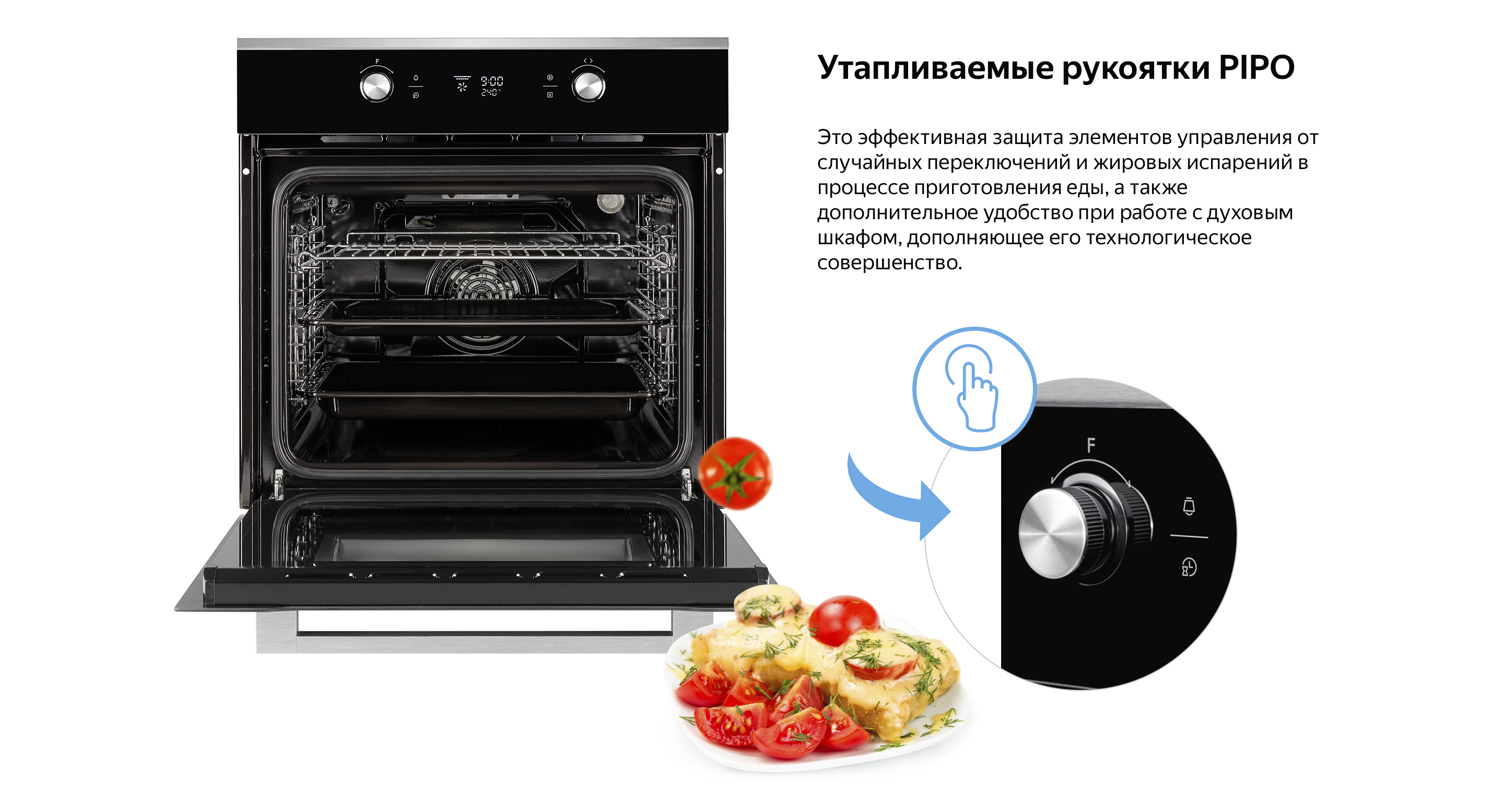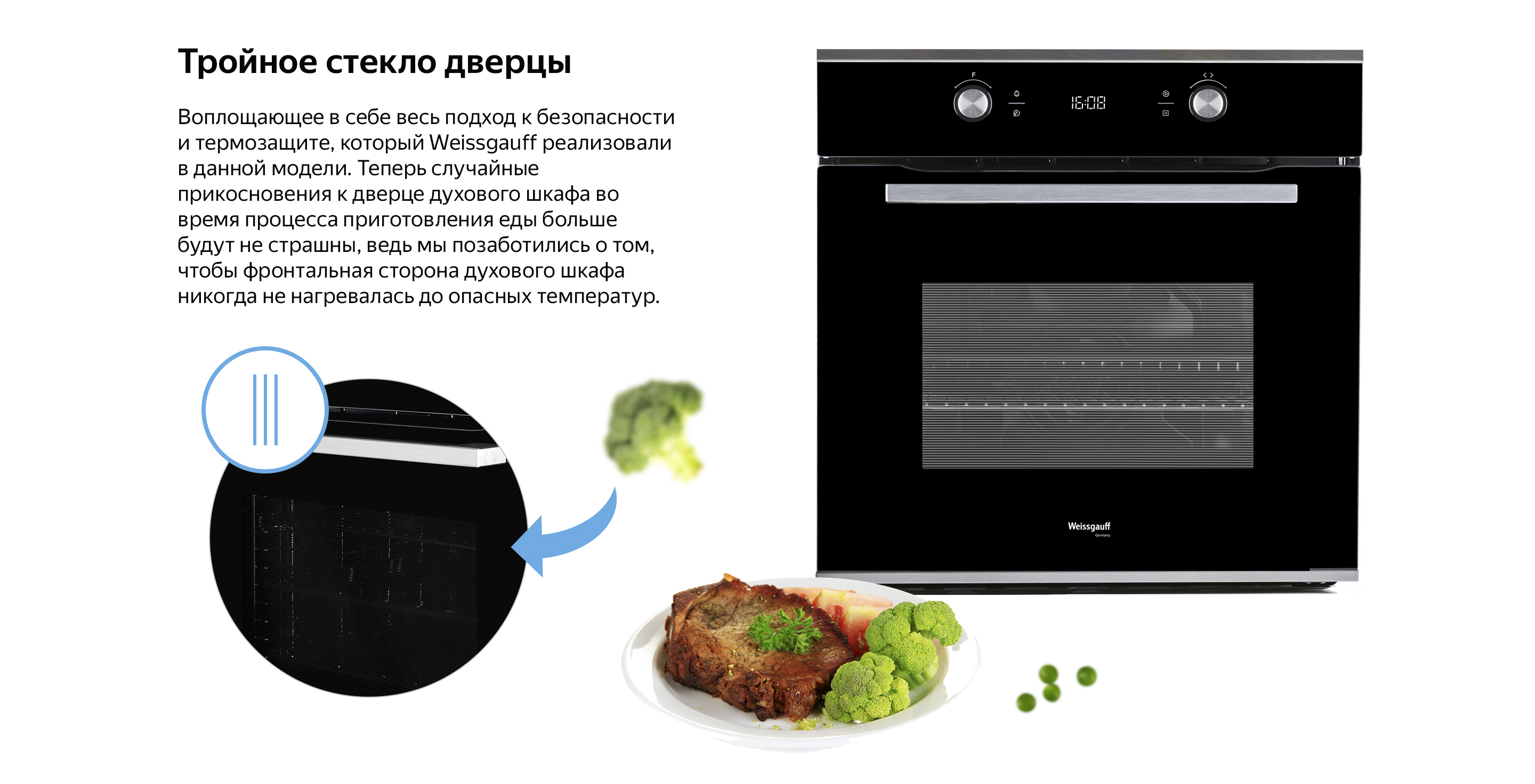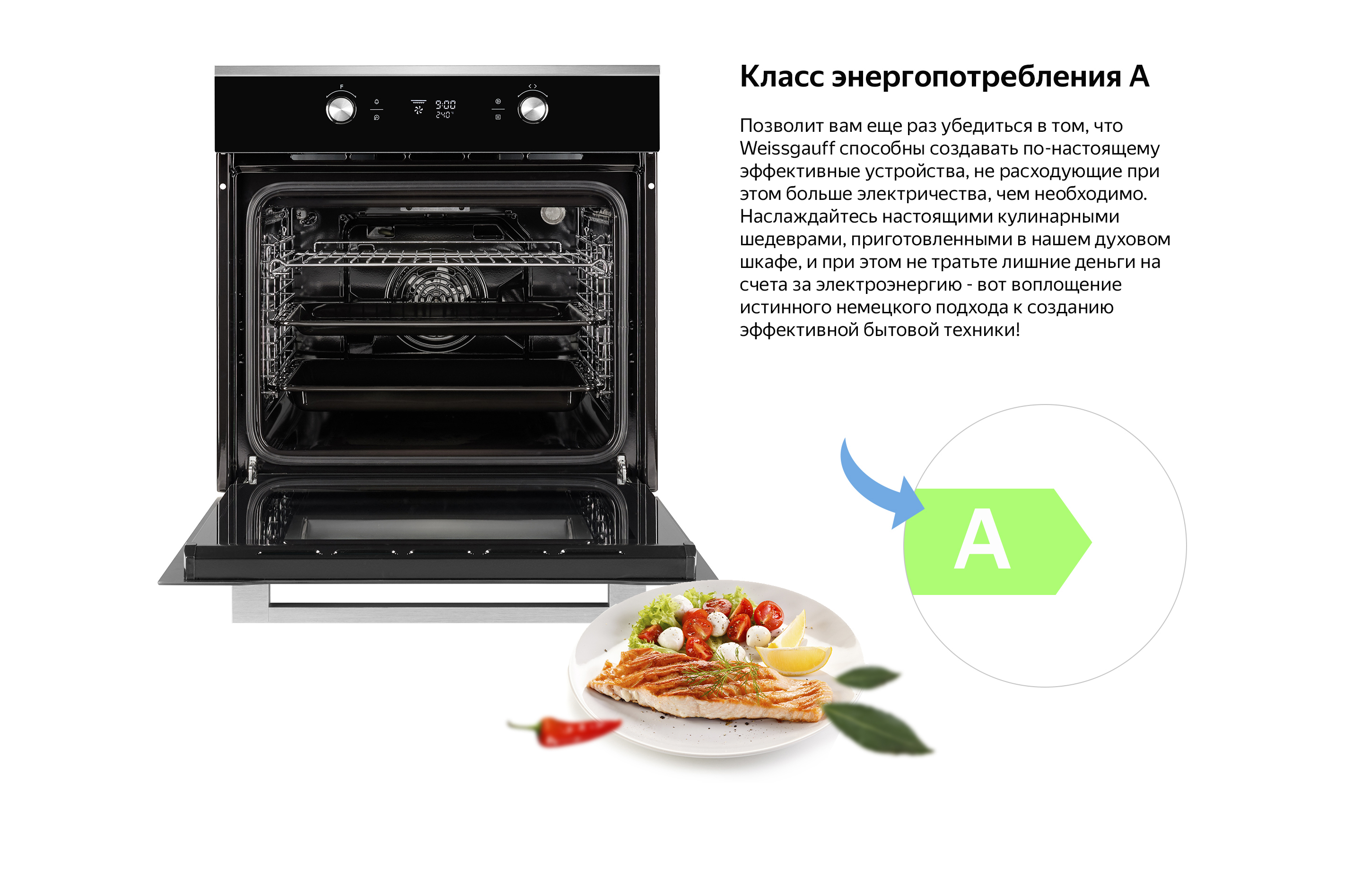 Новое поколение духовых шкафов от Weissgauff предлагает духовой шкаф, выполненный в великолепном сочетании черного закаленного стекла и стильной нержавеющей стали, имеющий современный дисплей с белой подсветкой и расширенной индикацией. Тройное остекление дверцы отражает всю ту немецкую предусмотрительность, с которой в Weissgauff подошли к её созданию. Управление, реализованное сочетанием чувствительного сенсорного блока и утапливаемых рукояток PIPO, дополняет богатый функционал, представленный сразу 9 режимами! Благодаря этому вы сможете полностью управлять процессом приготовления пищи, добиваясь идеального результата каждый раз!