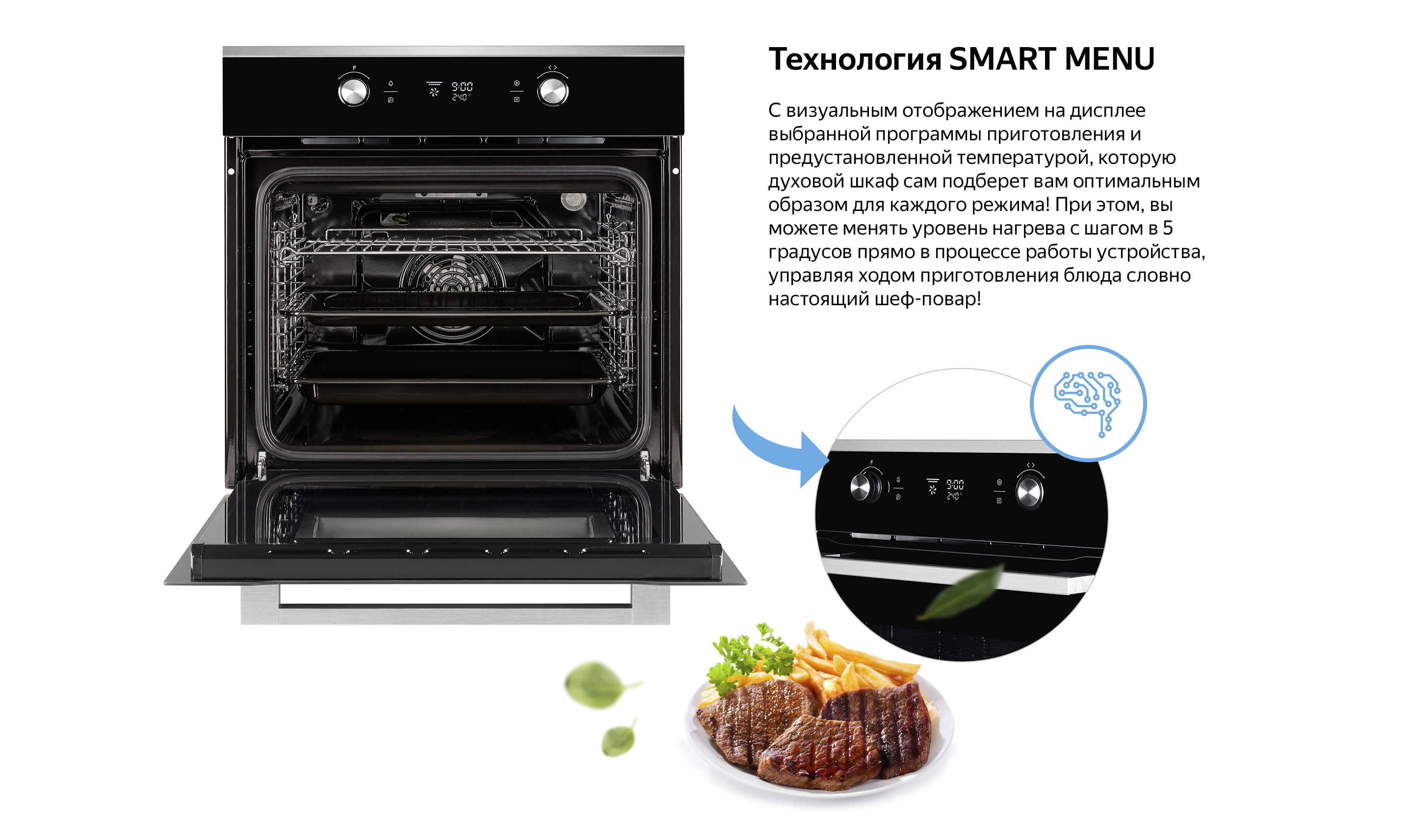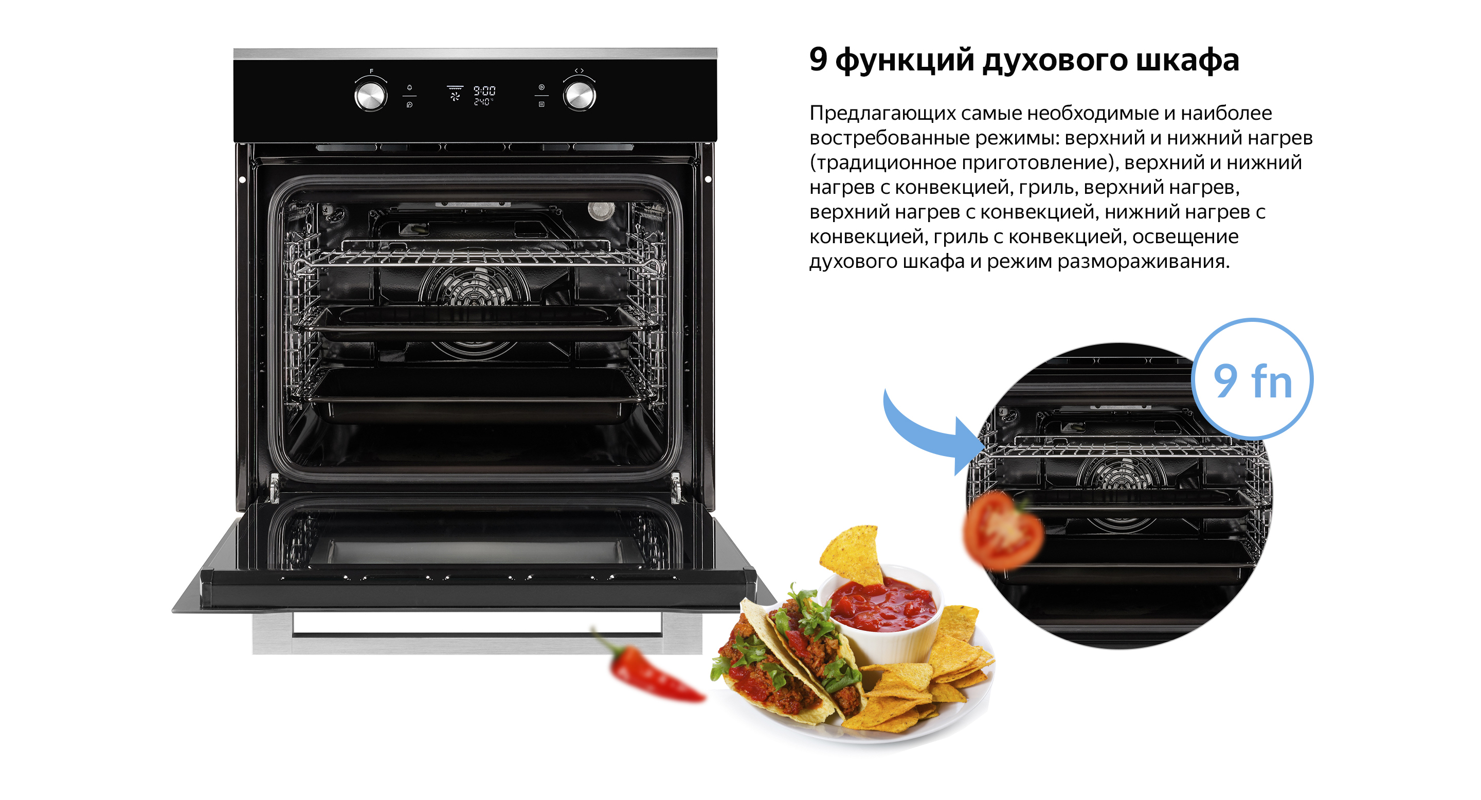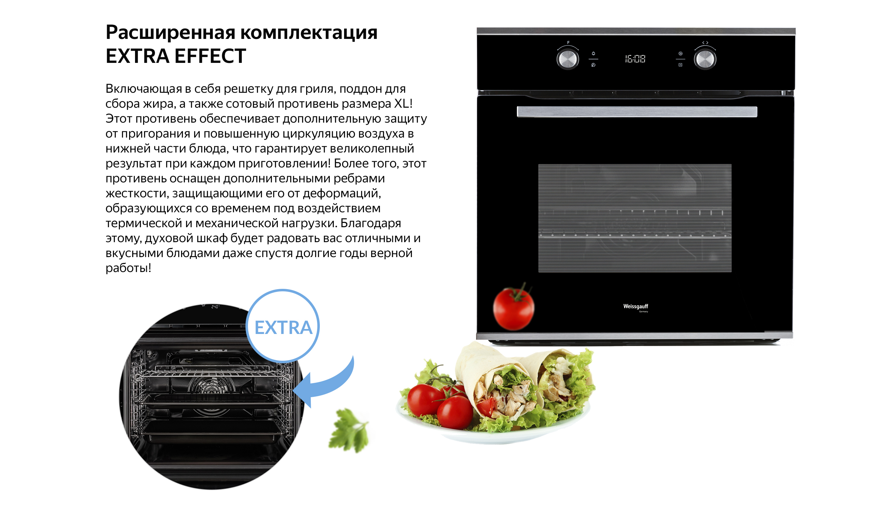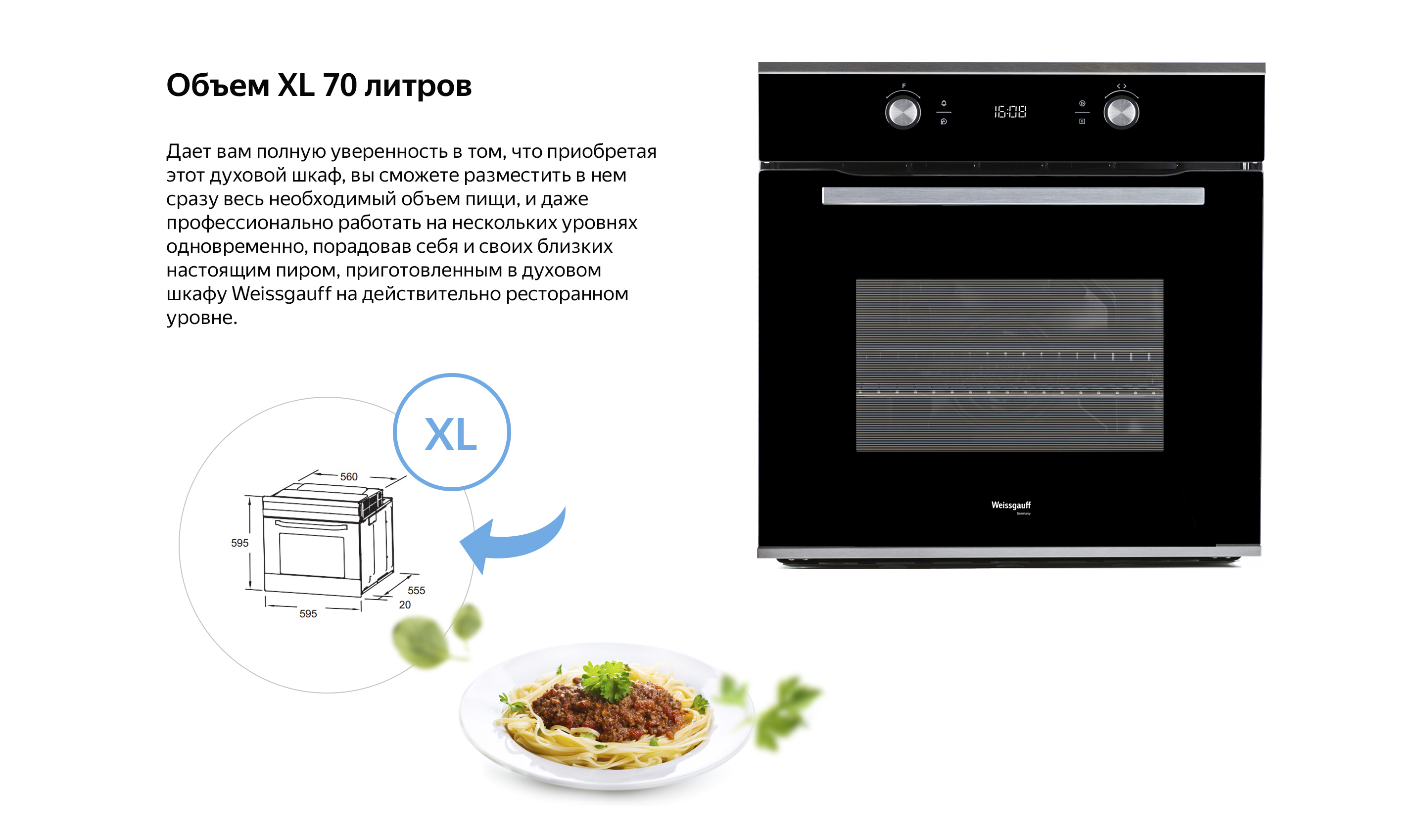 Новое поколение духовых шкафов от Weissgauff предлагает духовой шкаф, выполненный в великолепном сочетании черного закаленного стекла и стильной нержавеющей стали, имеющий современный дисплей с белой подсветкой и расширенной индикацией. Тройное остекление дверцы отражает всю ту немецкую предусмотрительность, с которой в Weissgauff подошли к её созданию. Управление, реализованное сочетанием чувствительного сенсорного блока и утапливаемых рукояток PIPO, дополняет богатый функционал, представленный сразу 9 режимами! Благодаря этому вы сможете полностью управлять процессом приготовления пищи, добиваясь идеального результата каждый раз!