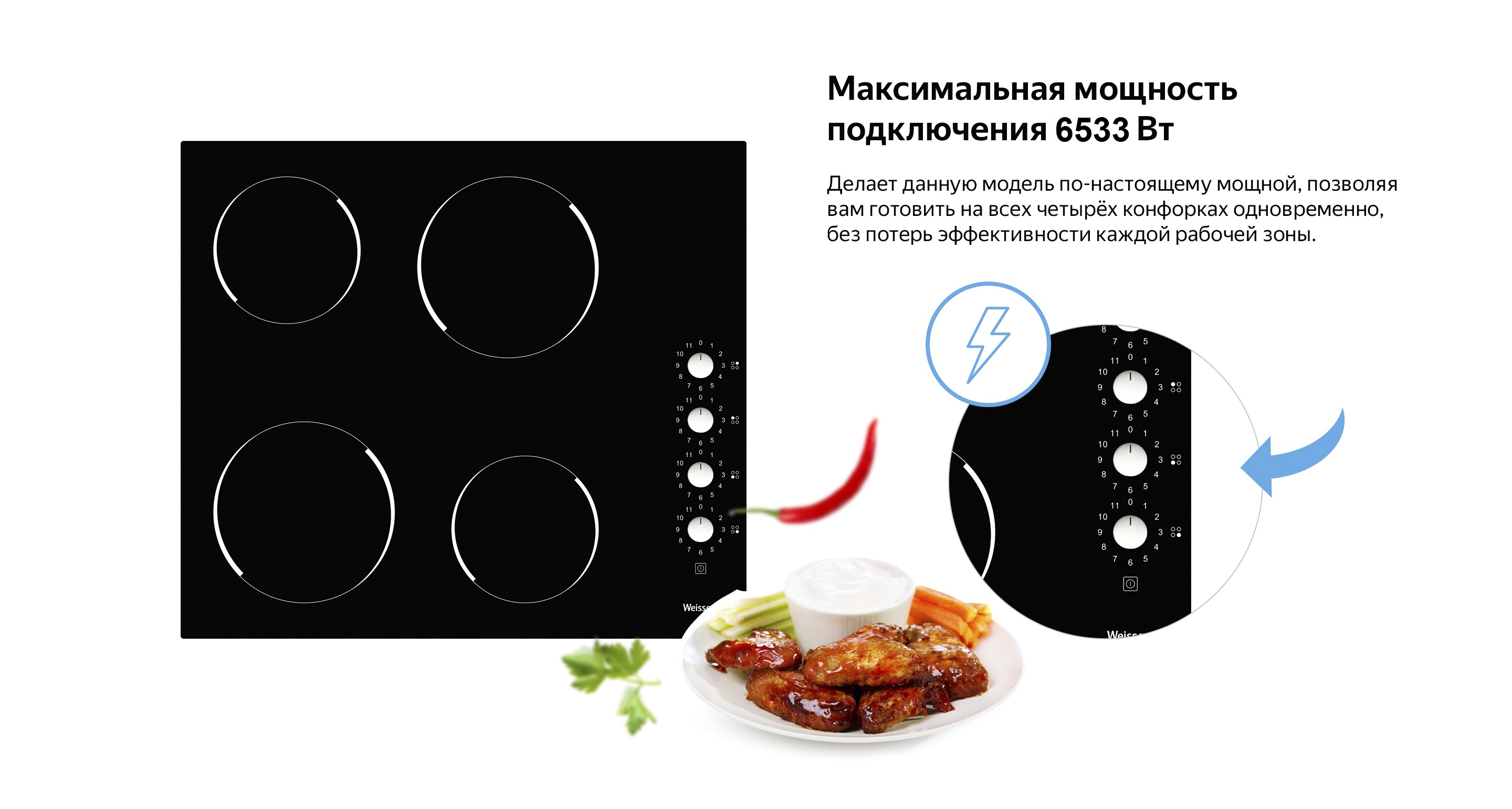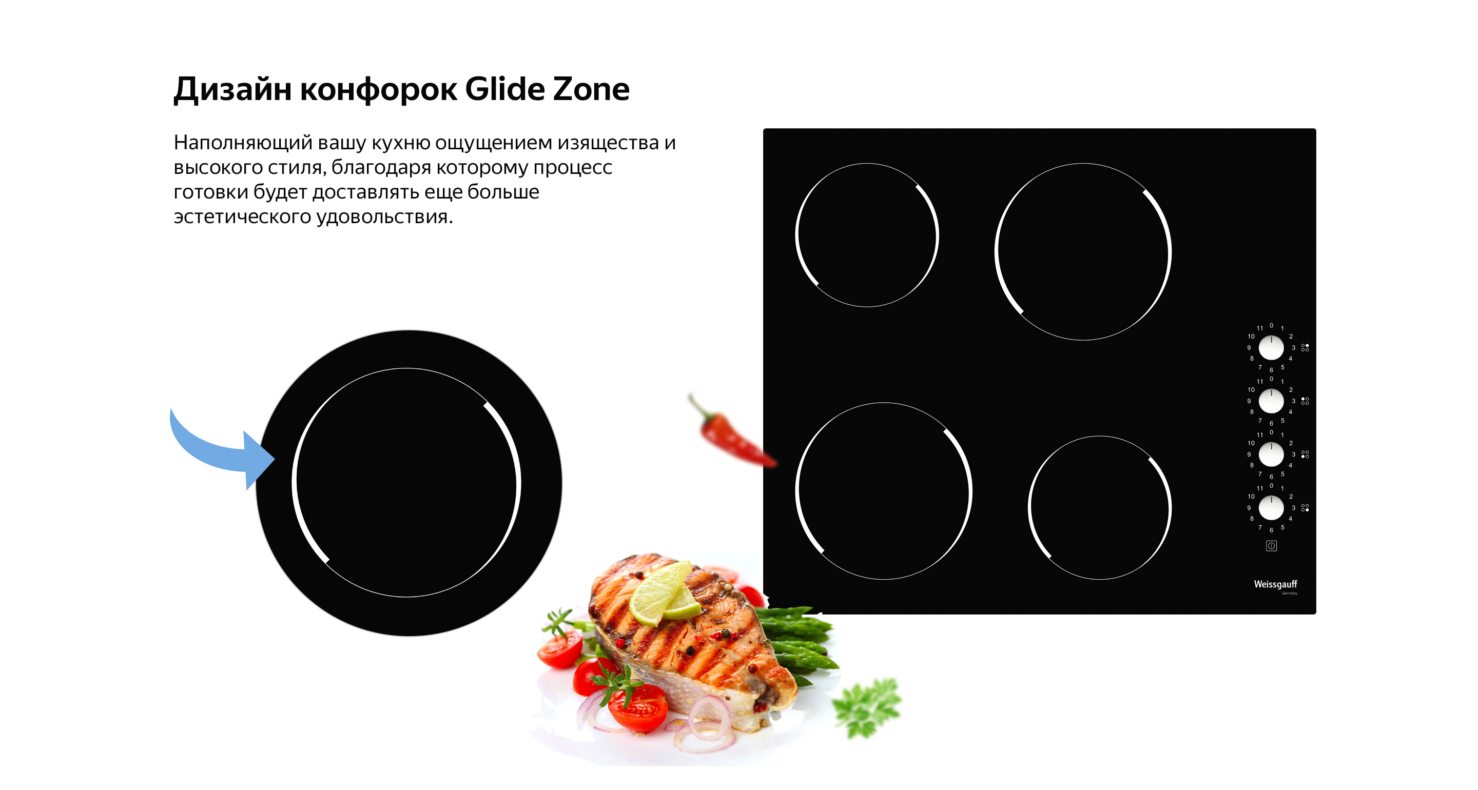 Стеклокерамическая варочная панель Weissgauff с надёжным механическим управлением Soft Switch - это безотказность, долговечность и ощущение истинного качества в каждом повороте рукоятки. Фундаментальный немецкий подход к исполнению всех элементов даёт вам полную уверенность: даже спустя долгие годы эта панель будет работать так же бесперебойно, как и в тот день, когда она впервые оказалась на вашей кухне.