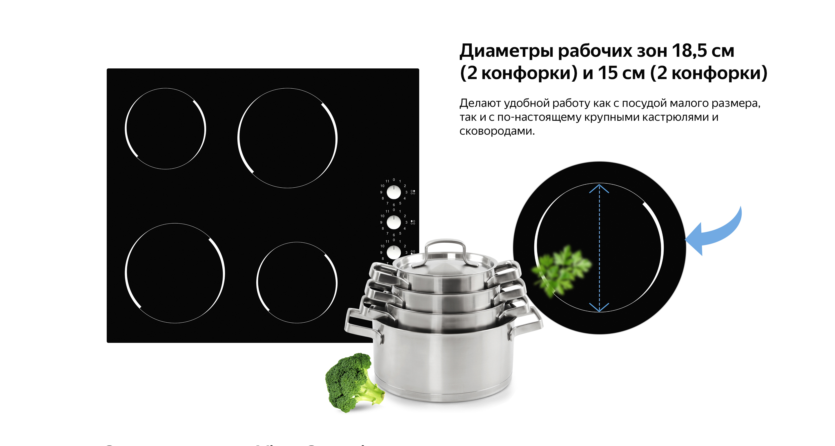 Электрическая варочная панель «Вайсгауф» HV 640 BK имеет четыре независимых конфорки разного размера, что позволяет использовать для приготовления блюд посуду любого диаметра. Модель предусматривает поворотные переключатели, дающие возможность подобрать оптимальную мощность из 11 вариантов нагрева. В HV 640 BK есть индикаторы, сообщающие о том, какая конфорка еще не остыла. Это делает ее эксплуатацию безопасной и предотвращает неприятности. Кроме того, пользователь может подогреть или довести блюдо до готовности без дополнительных расходований электричества.