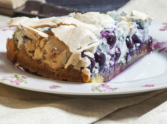 Для приготовления теста смешать песок (3 ст.л), три желтка, сметану, масло, добавить муку (чуть меньше стакана). Ингредиенты перемешать, чтобы получилось густое тесто. В него добавить разрыхлитель (или соду гашенную уксусом) Полученную смесь выложить в форму для выпечки, предварительно смазанную маслом и присыпанную манкой. Печь разогреть до 180 градусов и поставить корж выпекаться на 20-30 мин. до появления «затянутой» корочки. Использовать режим «нижний нагрев». Корж достать и на него выложить фрукты. Печь не рекомендуется отключать. Для приготовления безе взбить 3 белка с ¾ ст. песка до получения «твердой» консистенции. Безе выложить поверх фруктов и поставить назад в мини-печь на 10-15 минут.