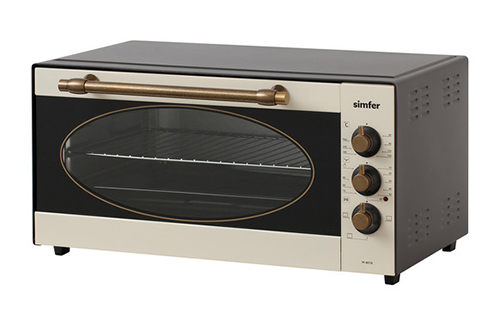 Бренд Simfer представляет небольшую, но вместительную мини-печь М4016 корпус которой окрашен черной термостойкой эмалью, а фасад выполнен в бежевом цвете с фурнитурой цвета бронзы. Духовка для любителей классического дизайна.