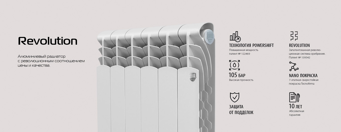 Запатентованная инновационная заглушка повышенной прочности с нанополимерной мембраной наряду с использованием вертикальных коллекторов круглого сечения гарантирует надежную работу алюминиевых радиаторов ROYAL THERMO в системах, подверженных частым гидроударам