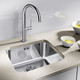 Более элегантная при использовании. По существующим стандартам невозможно сделать так, чтобы материал был абсолютно устойчив к царапинам без специальной обработки. Незначительные признаки использования твердых предметов, таких как керамические ножи, стекло и кухонная посуда, являются частью естественного внешнего вида нержавеющей стали. Во время использования мойки из нержавеющей стали образуются небольшие царапины на ее поверхности, однако, сама мойка остается прочной и устойчивой.