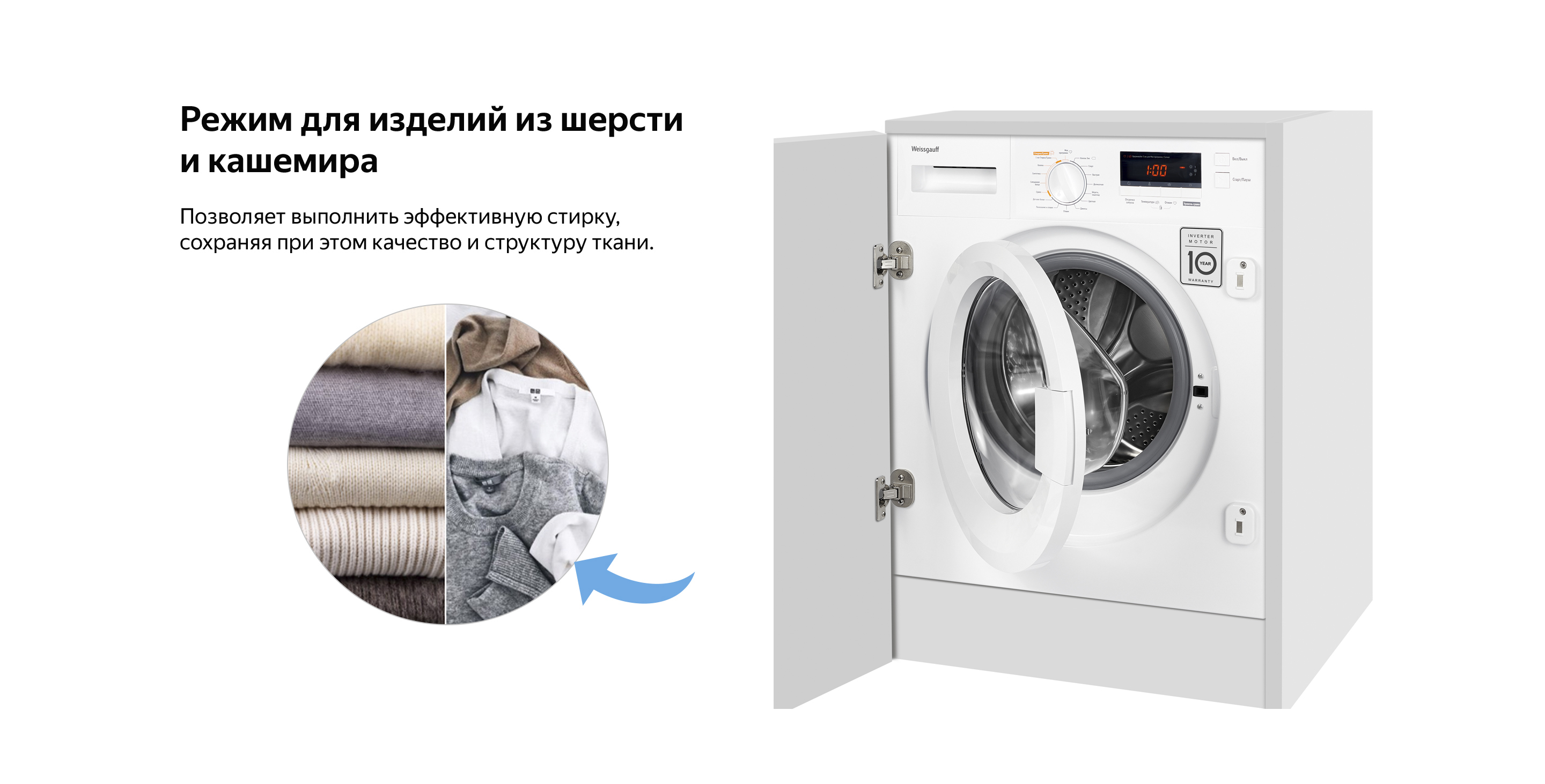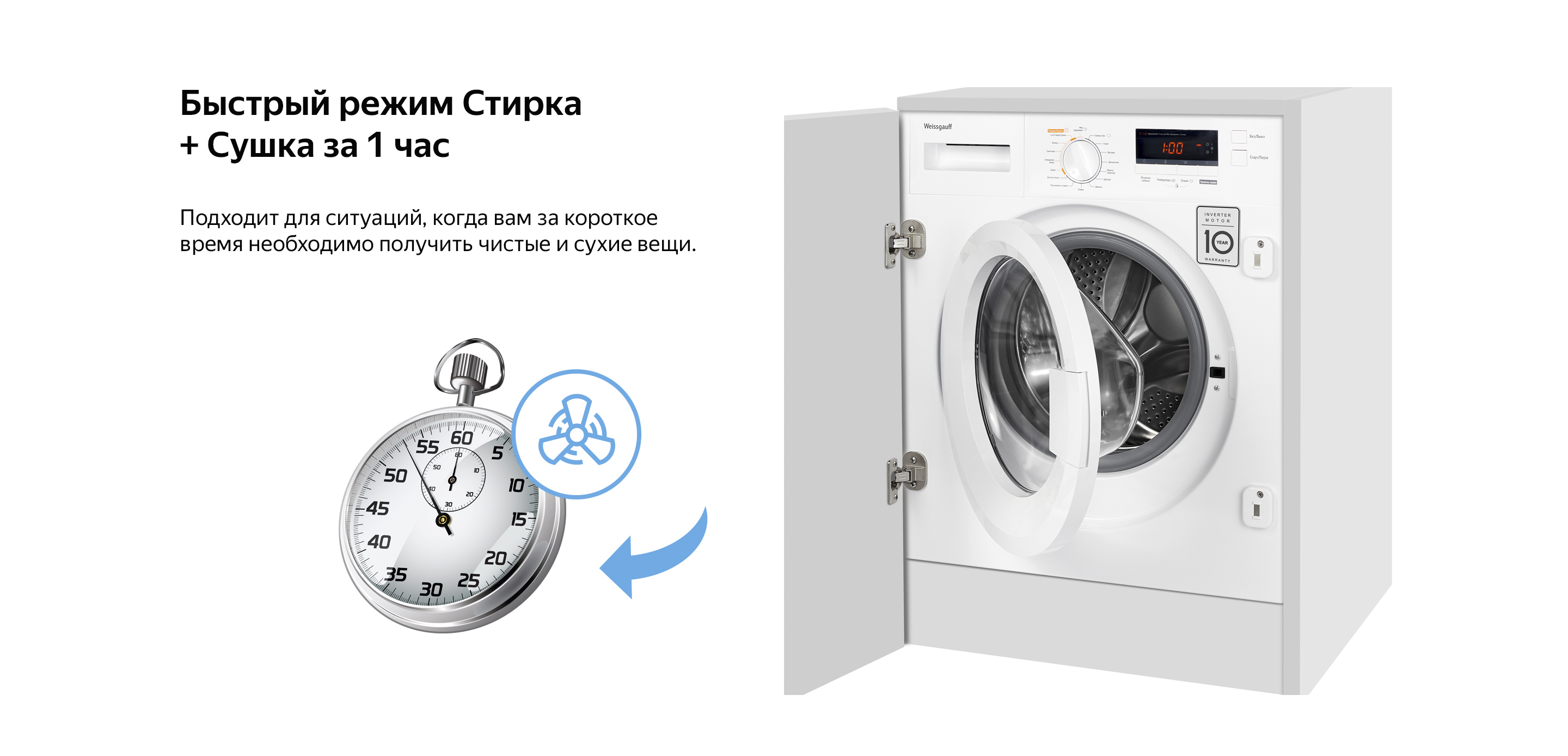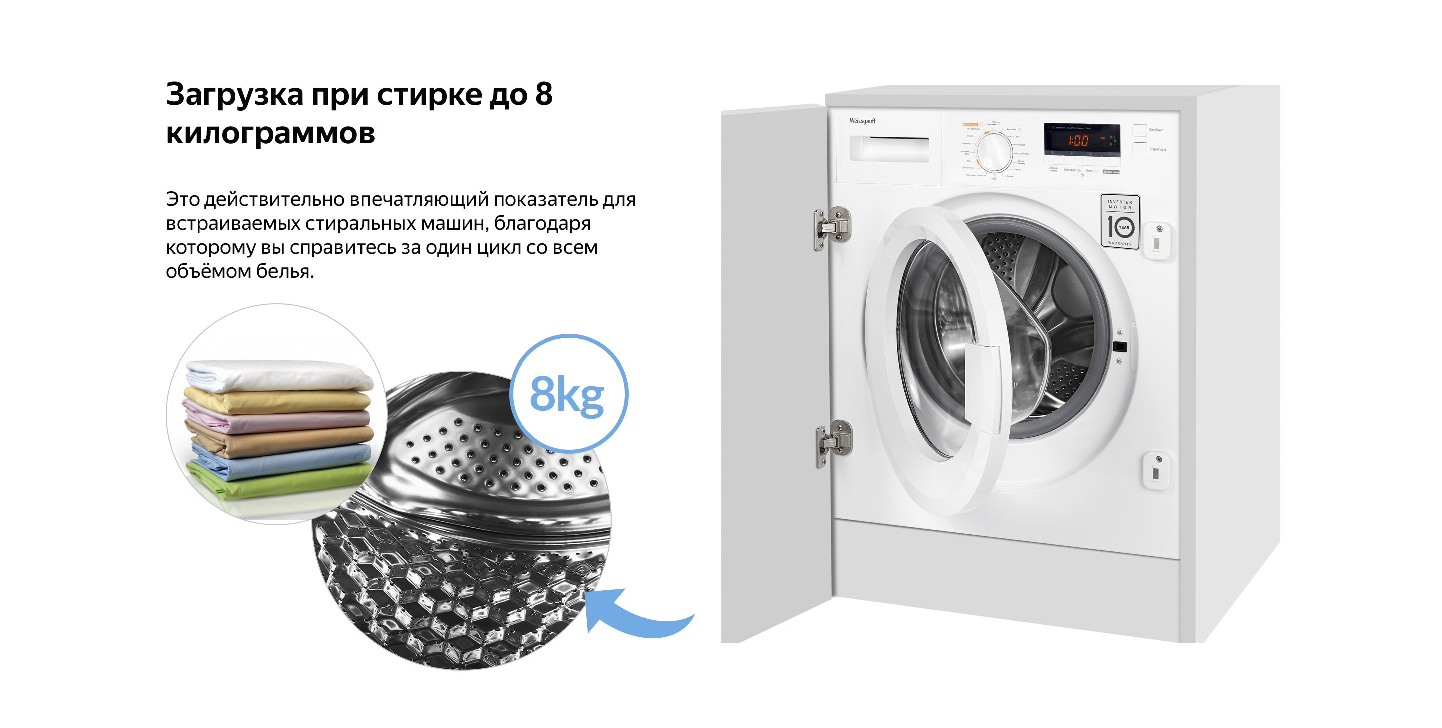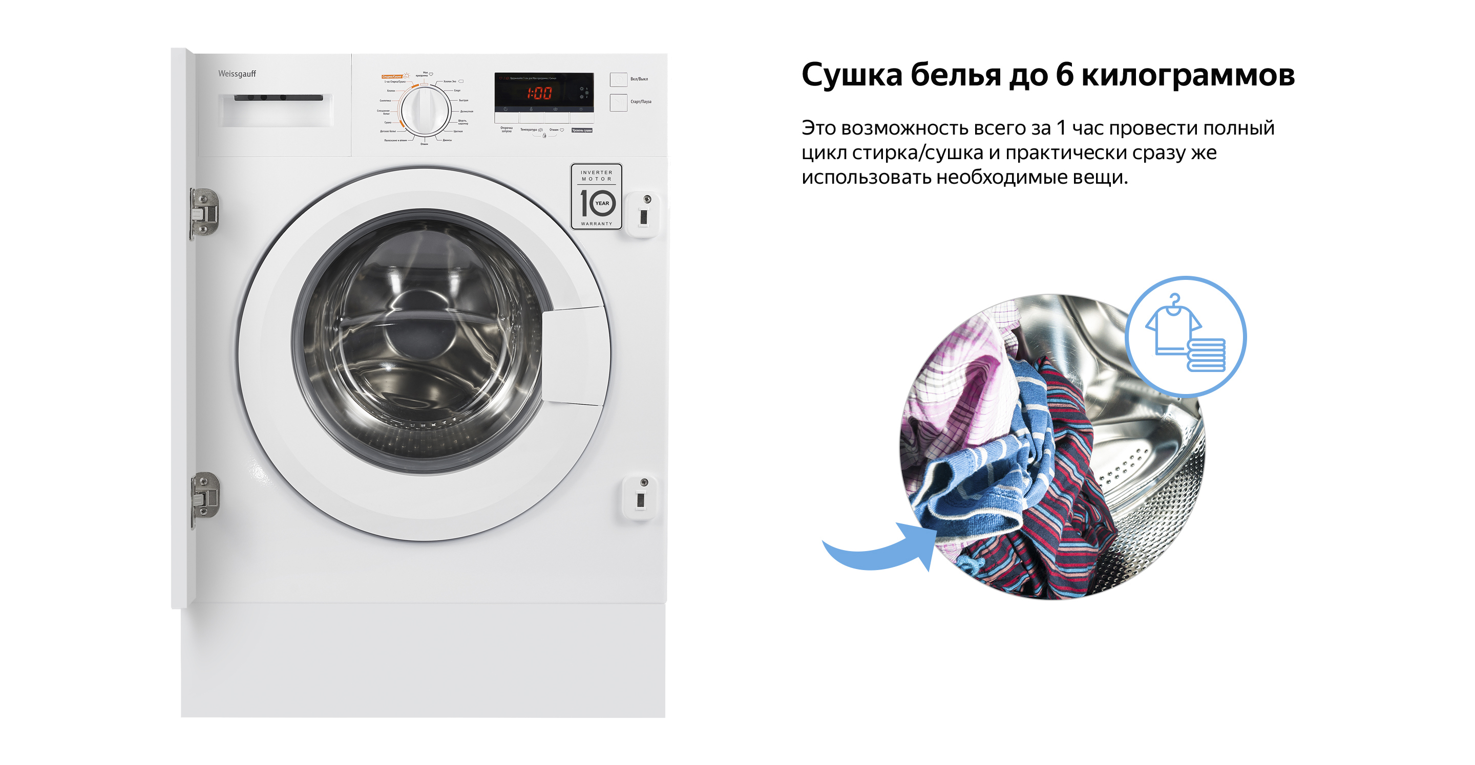 Встраиваемая стиральная машина с сушкой Weissgauff WMDI 6148D