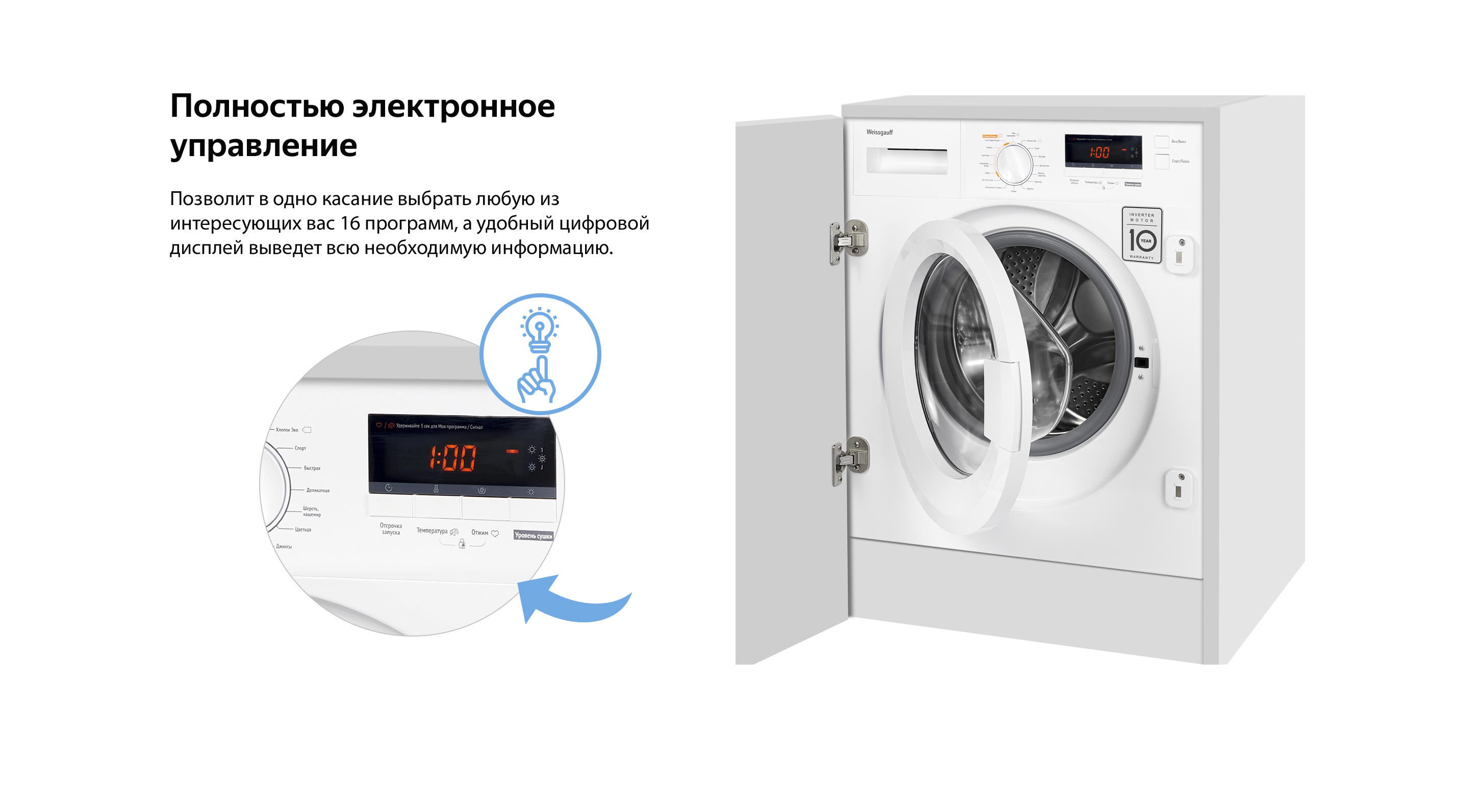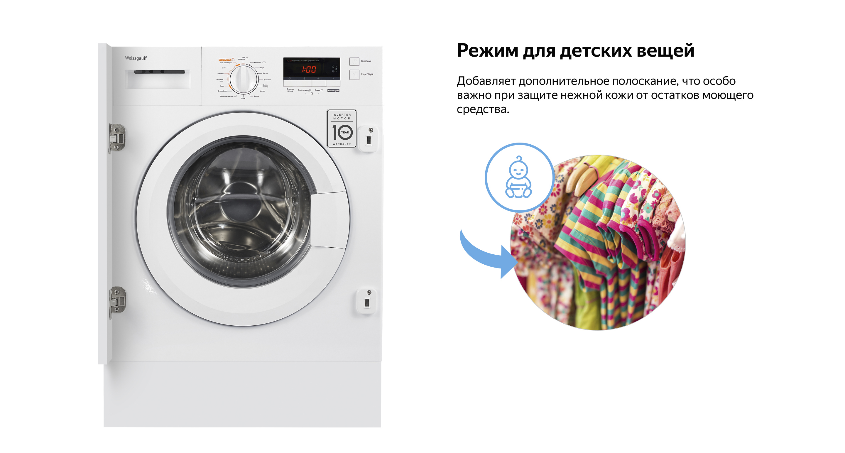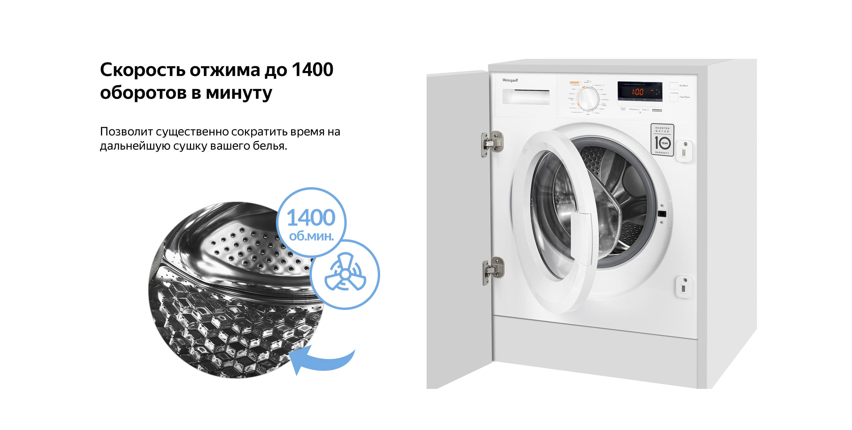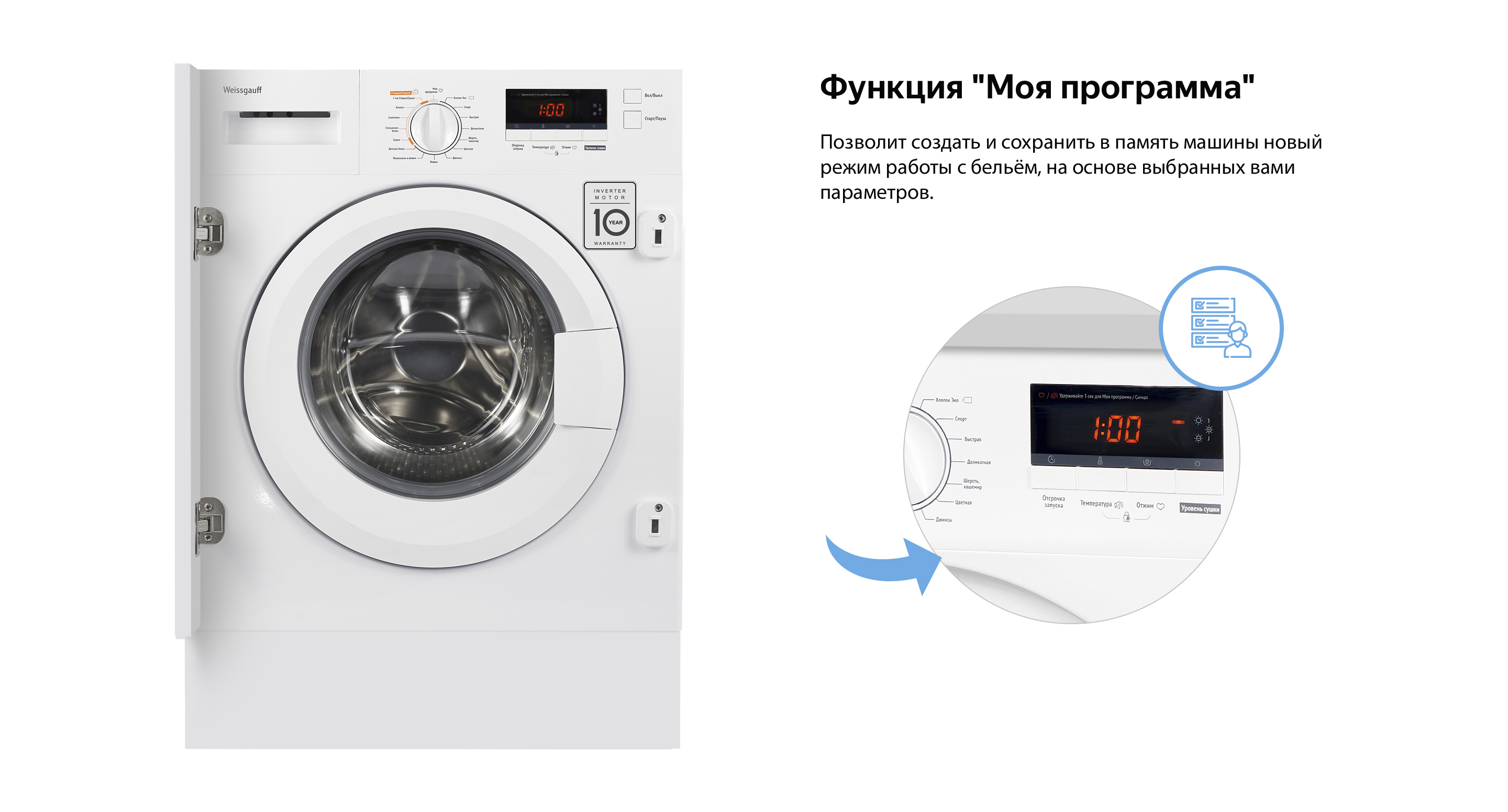 Встраиваемая стиральная машина с сушкой Weissgauff WMDI 6148D