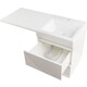 Тумба оснащена двумя выдвижными ящиками, установленными на направляющие Boyard скрытого монтажа. В верхнем ящике предусмотрен вырез, что позволяет использовать стандартный сифон. На тумбу устанавливается раковина Эстет Даллас в правом или левом исполнении из искусственного мрамора с удобной столешницей.