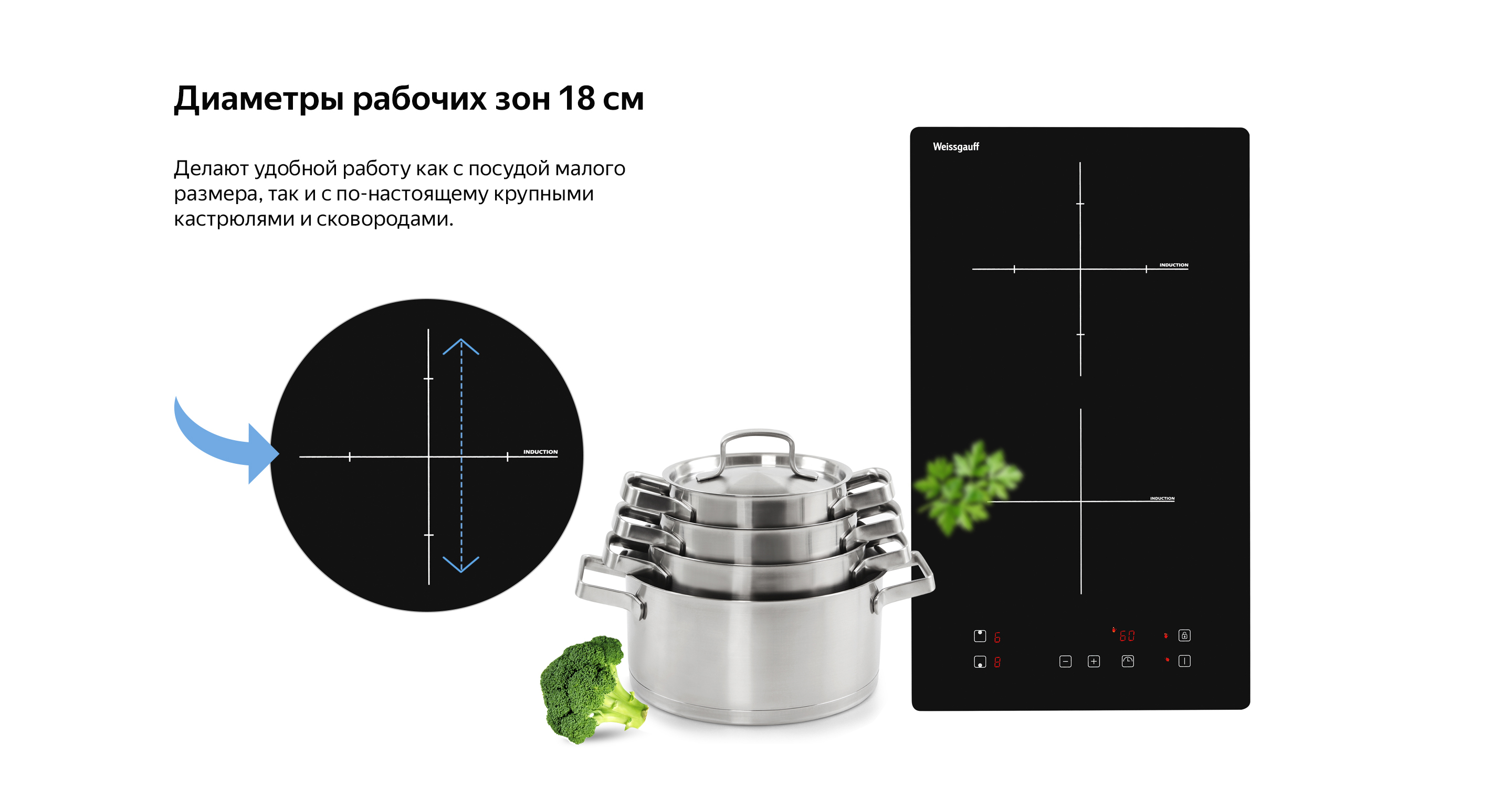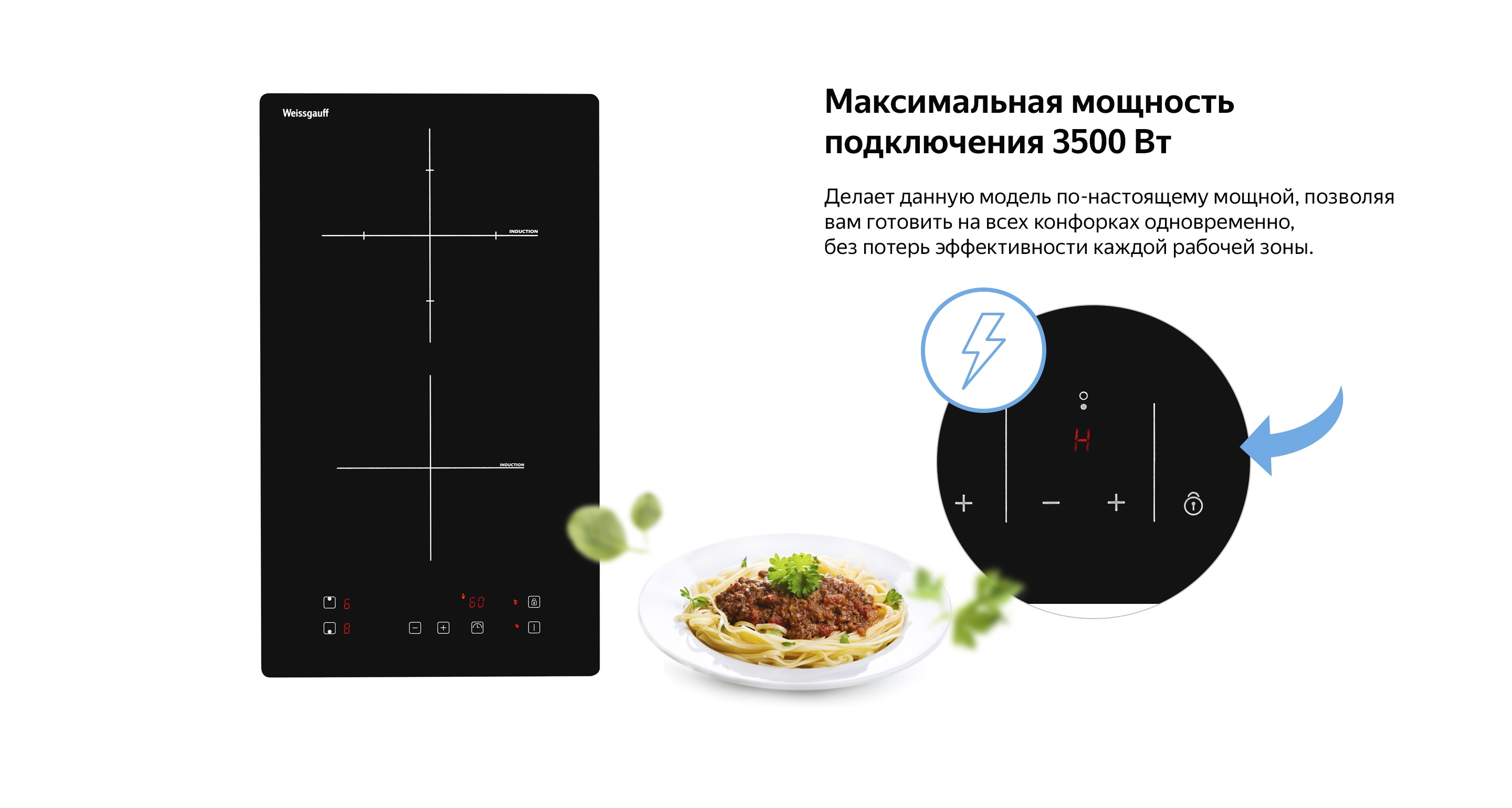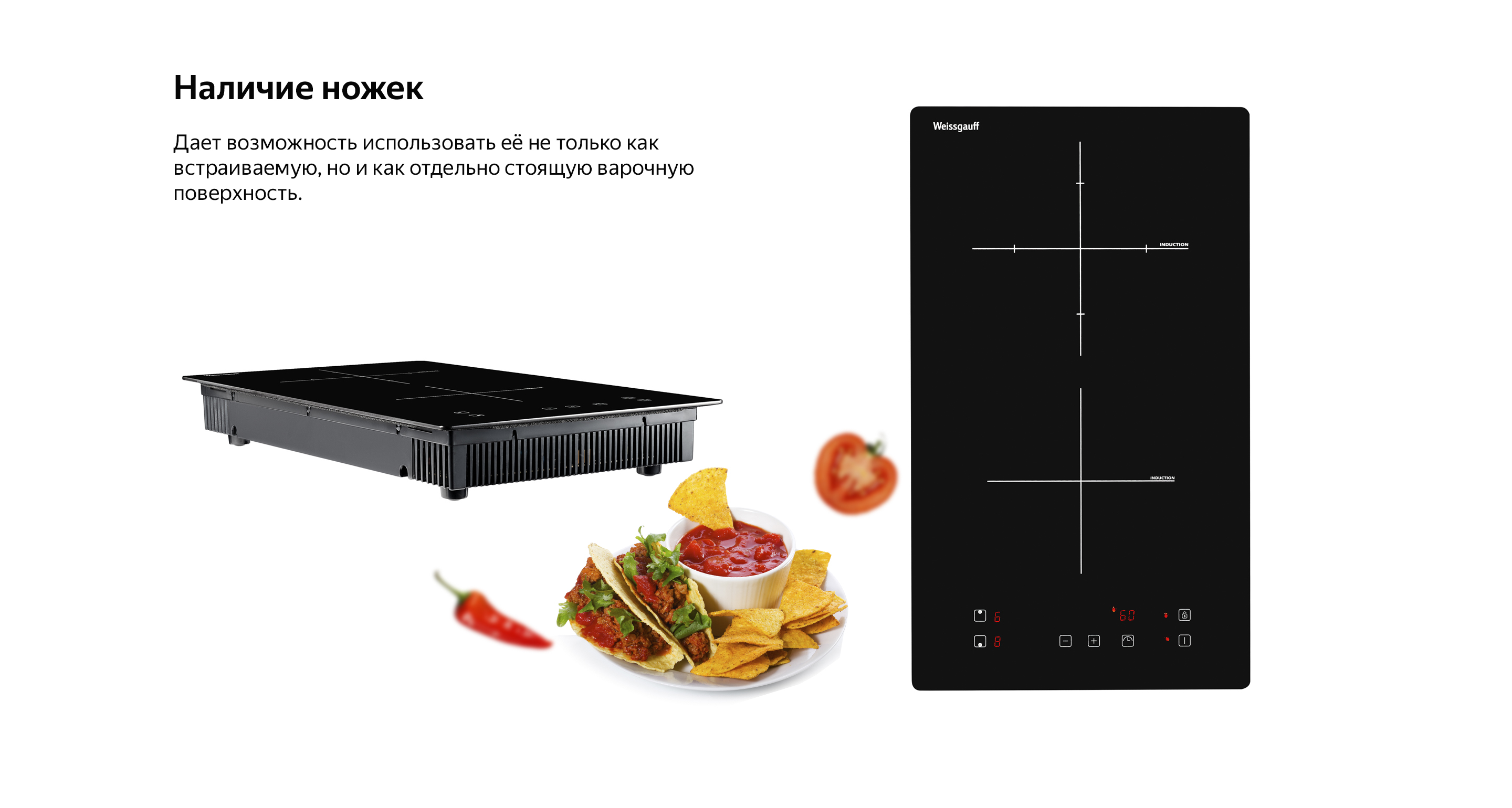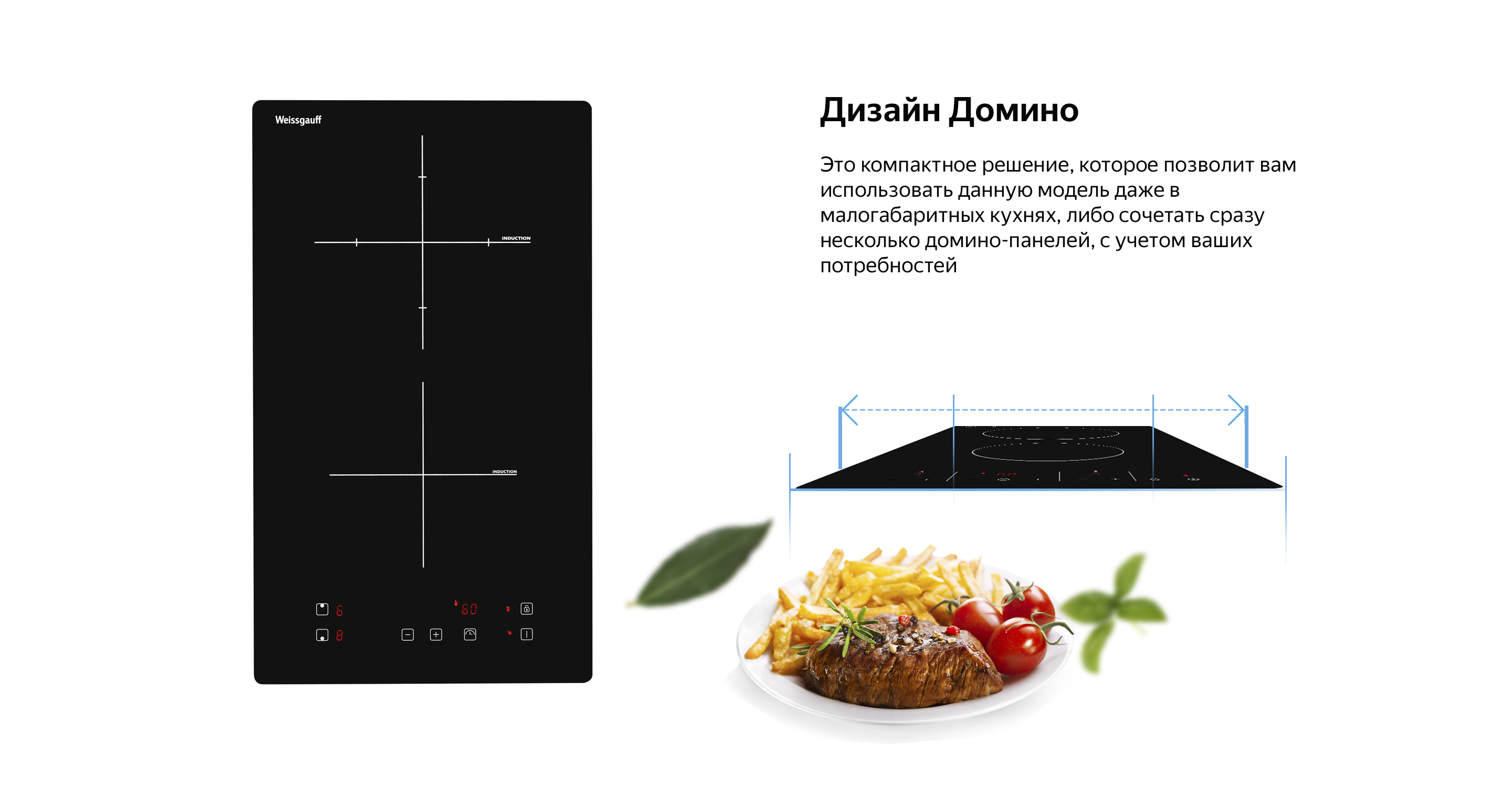 Индукционная панель Weissgauff в дизайне "Домино" с конфорками Cross Zone - это сочетание максимальной компактности и технологичности в одной модели!