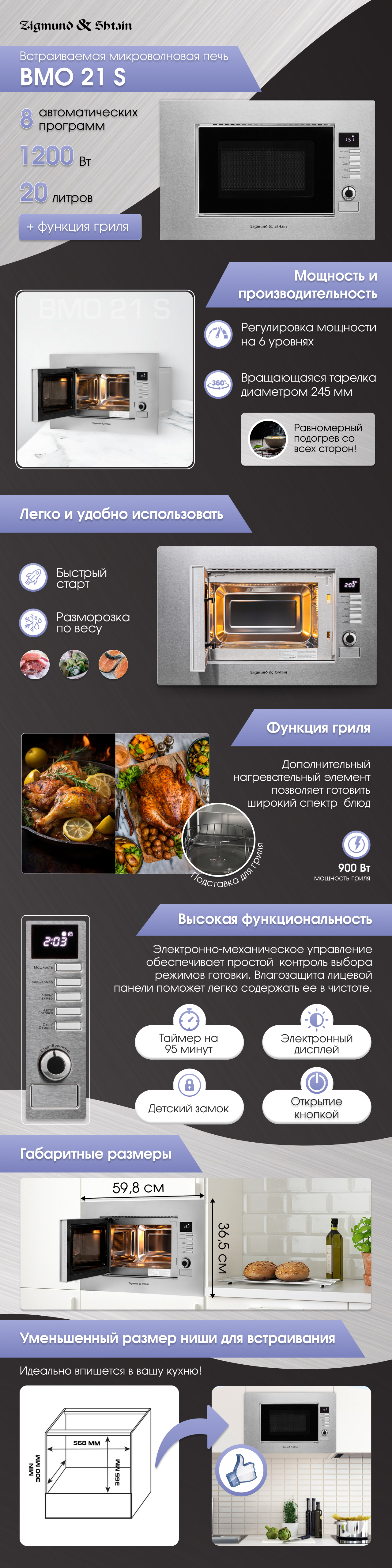 Встраиваемая микроволновая печь Zigmund & Shtain BMO 21 S